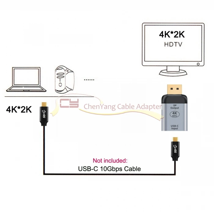 Comprar Cable de USB-C tipo C hembra a Displayport DP Sink HDTV, Adaptador 4K, 60hz, 100 p, 10Gbps, 1080 W, para tableta, teléfono y ordenador portátil
