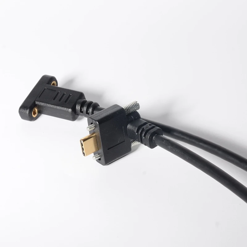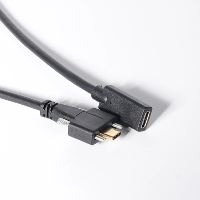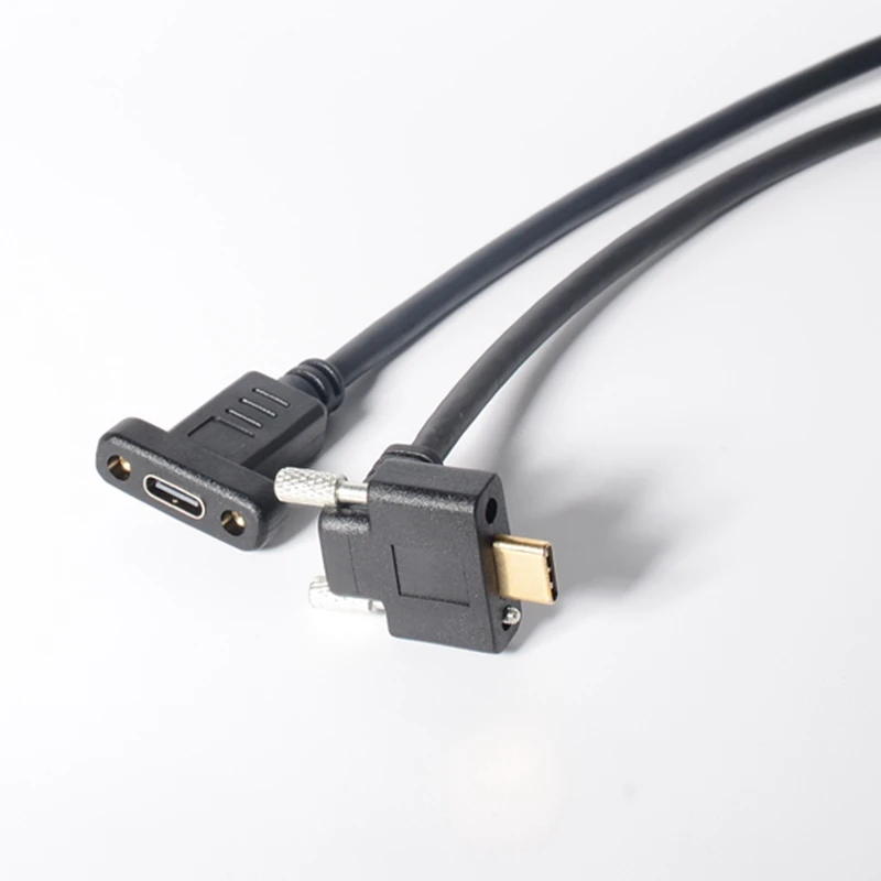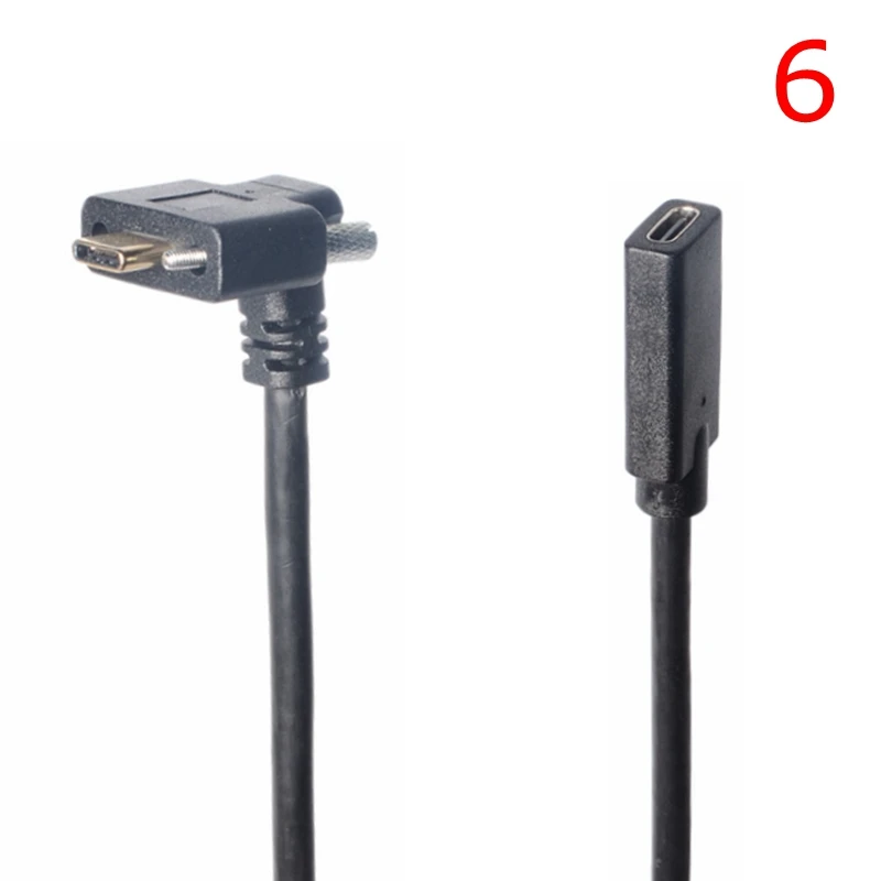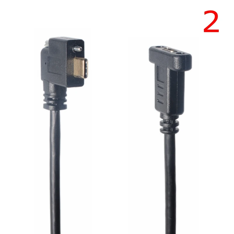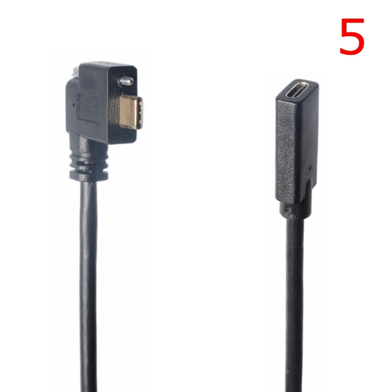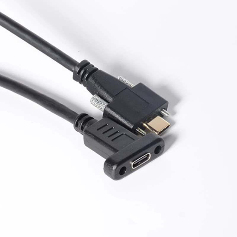 Cable de extensión USB C recto, 90 grados y 270 grados en ángulo de bloqueo de tornillo doble USB 3.1 tipo C macho a tipo C macho y hembra con orificio para tornillo de montaje en panel 10 Gbps 60 Hz