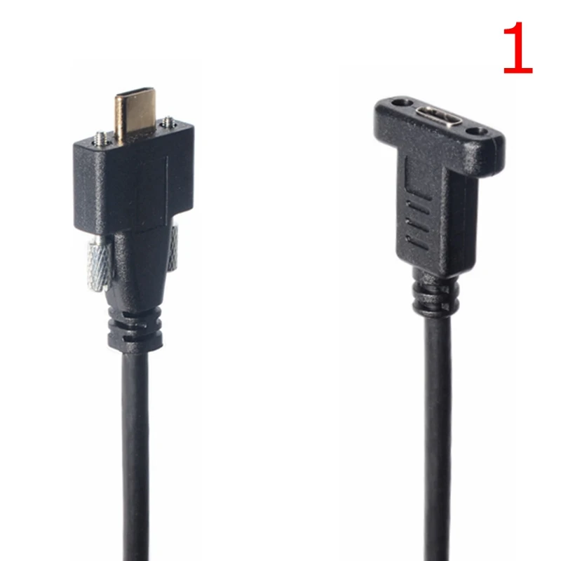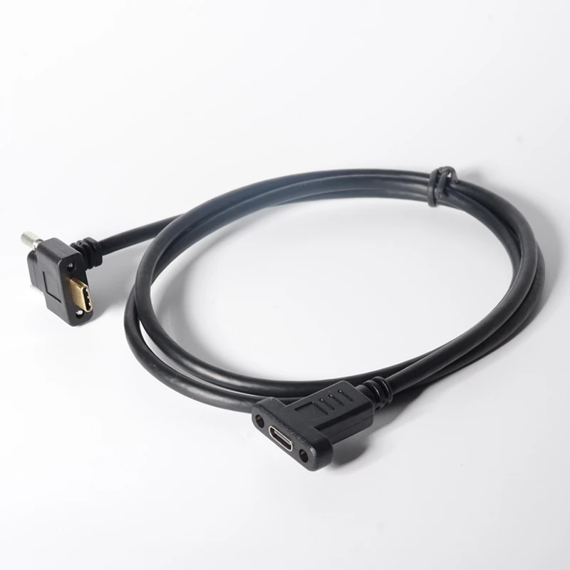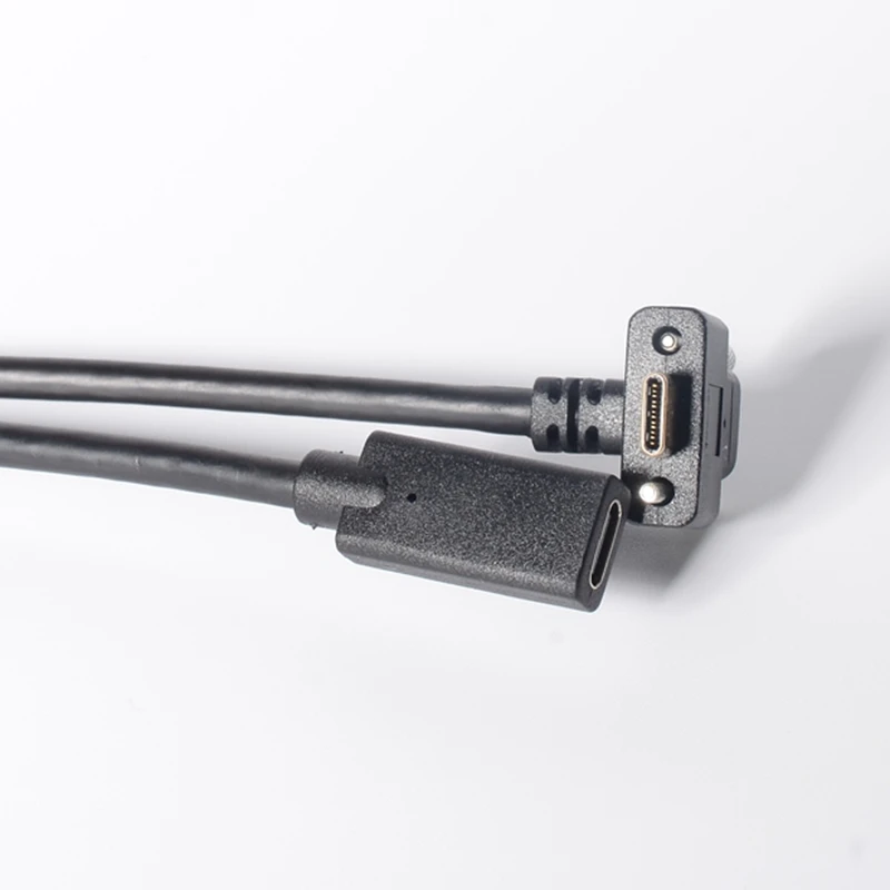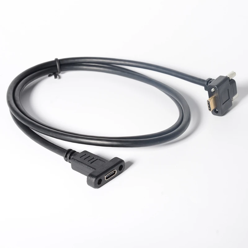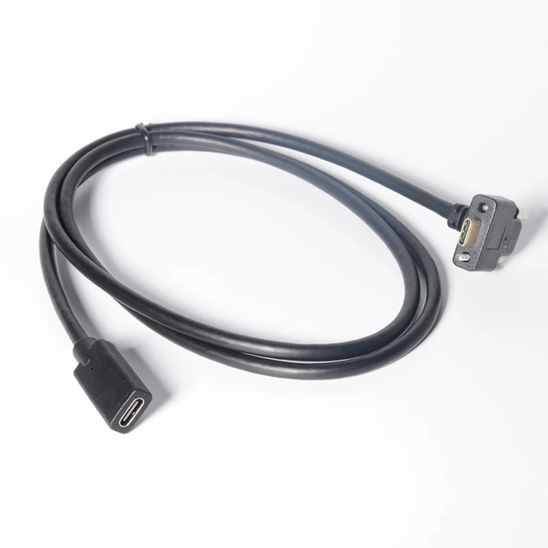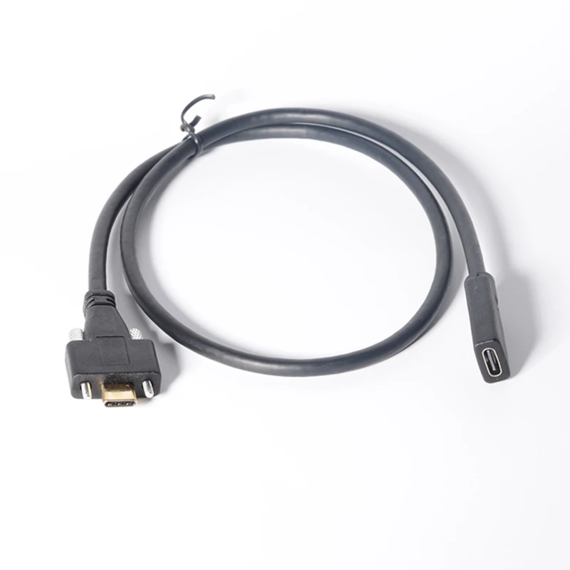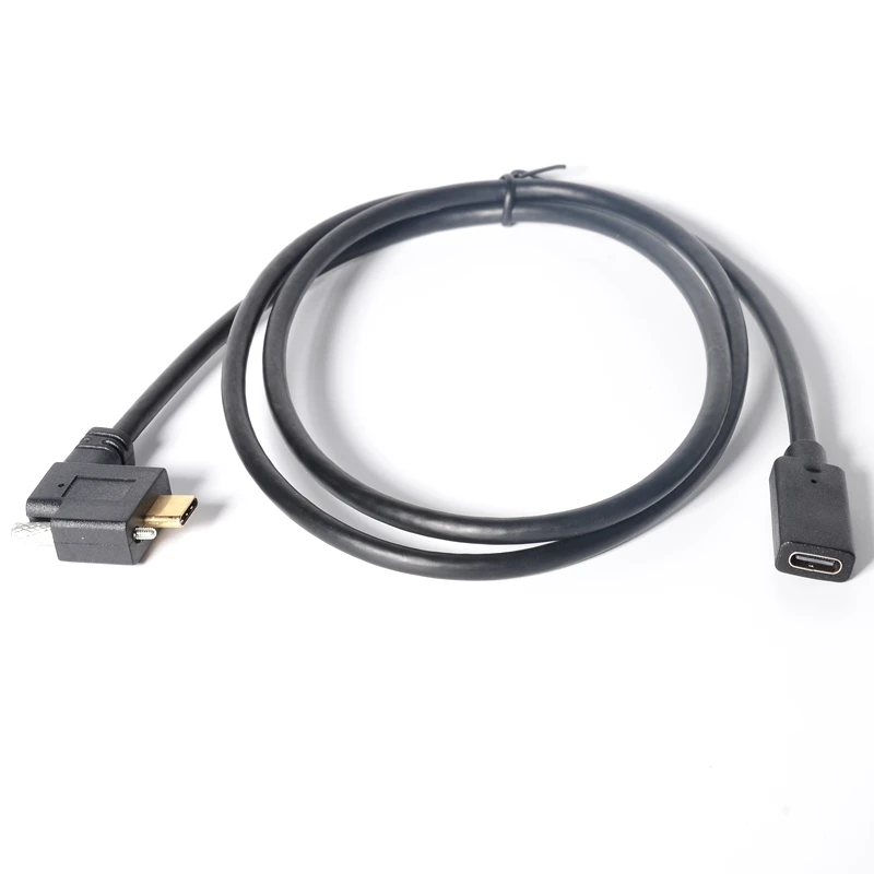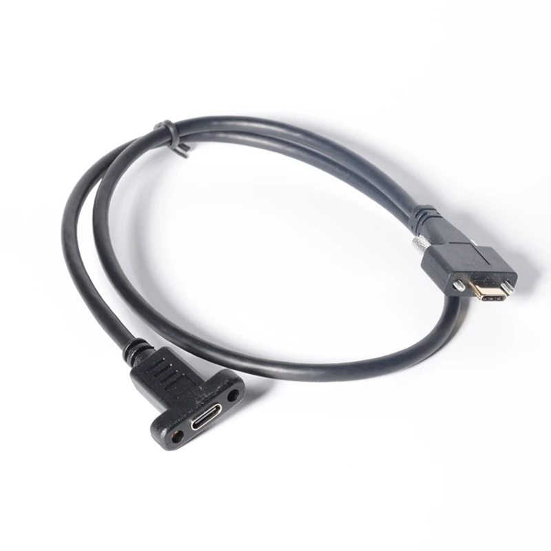 Cable de extensión USB C recto, 90 grados y 270 grados en ángulo de bloqueo de tornillo doble USB 3.1 tipo C macho a tipo C macho y hembra con orificio para tornillo de montaje en panel 10 Gbps 60 Hz
