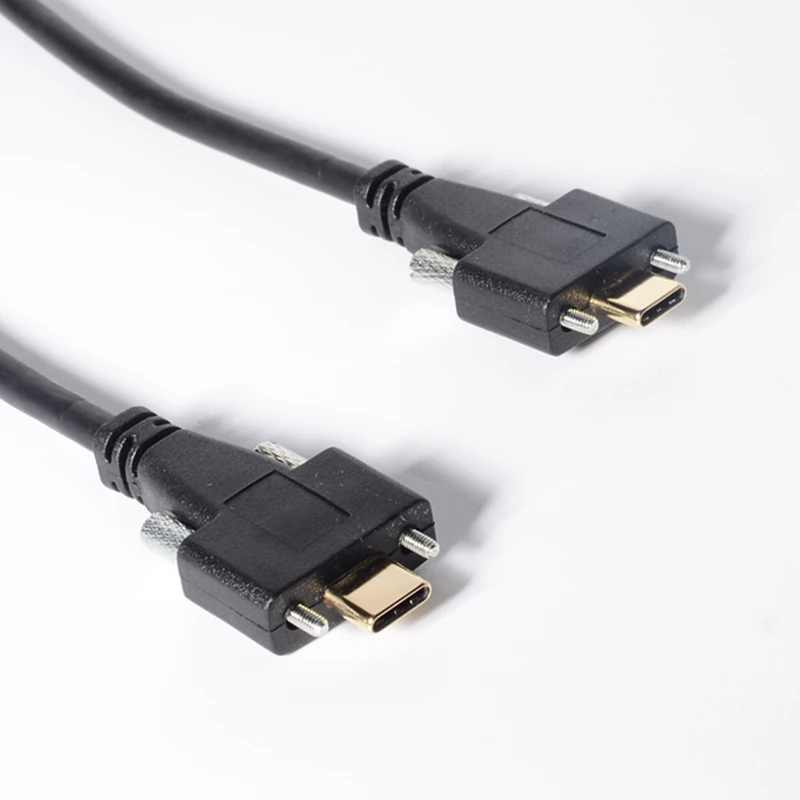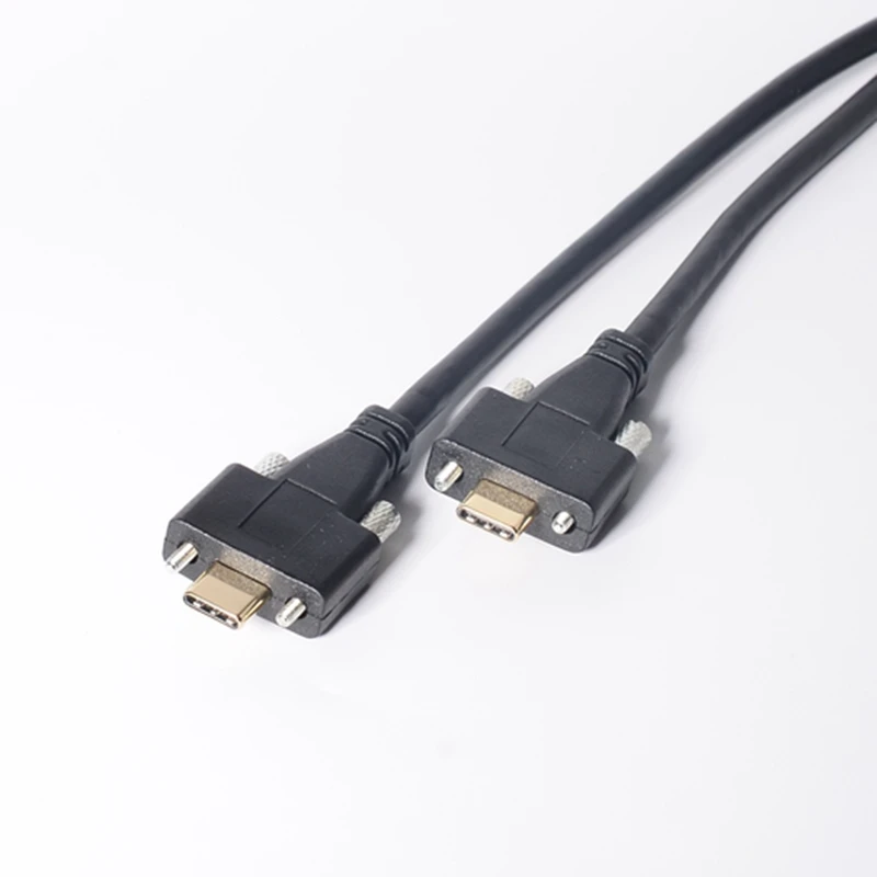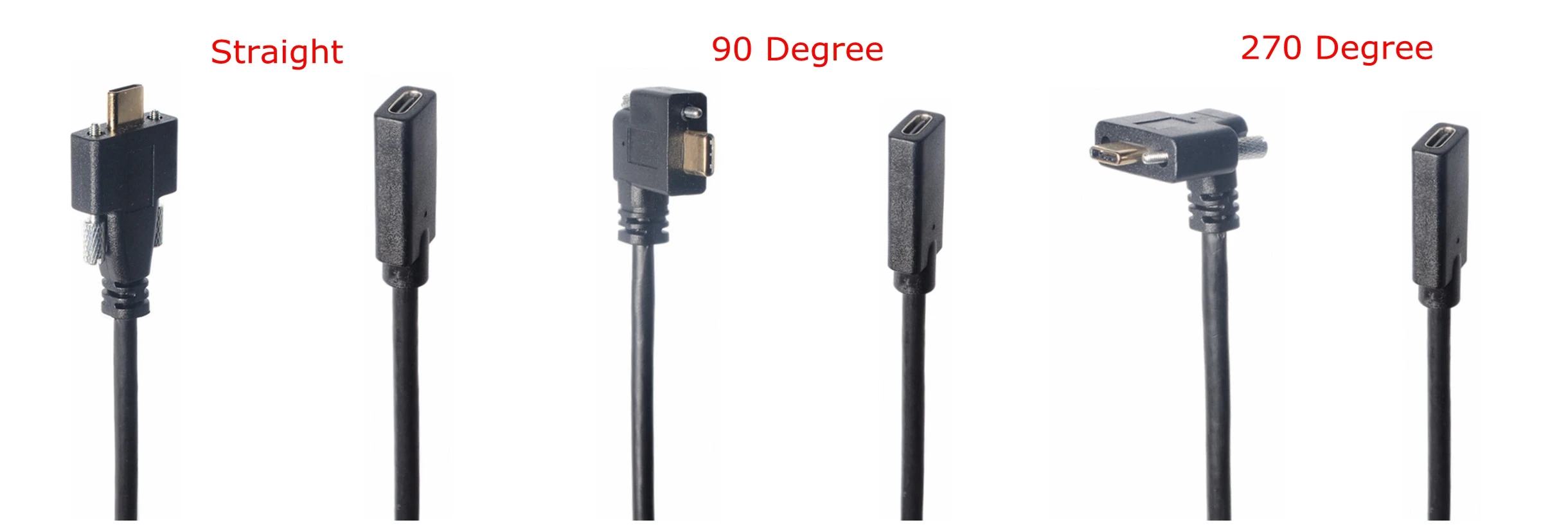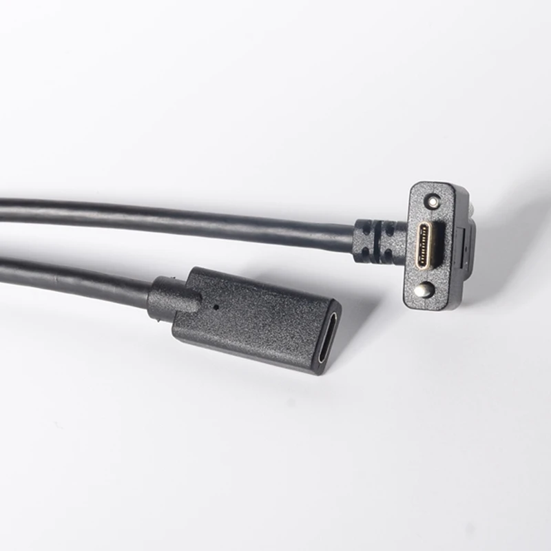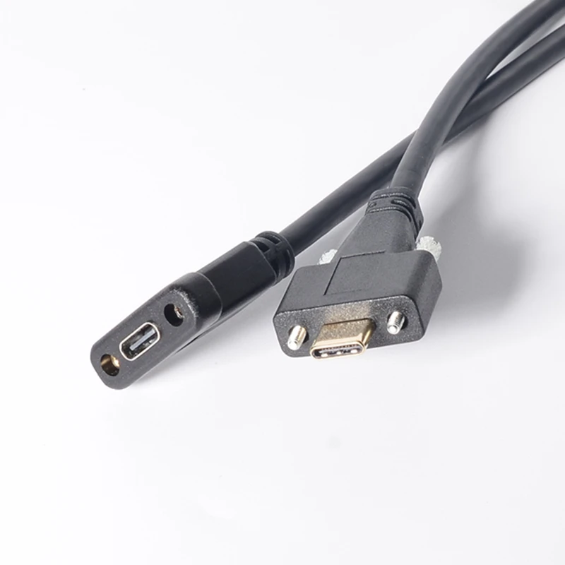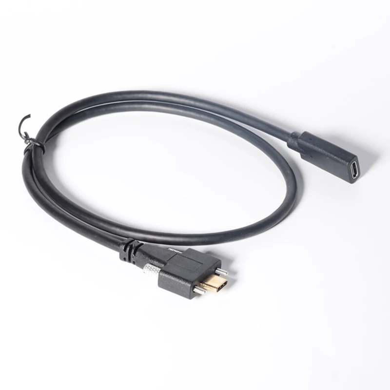 Cable de extensión USB C recto, 90 grados y 270 grados en ángulo de bloqueo de tornillo doble USB 3.1 tipo C macho a tipo C macho y hembra con orificio para tornillo de montaje en panel 10 Gbps 60 Hz
