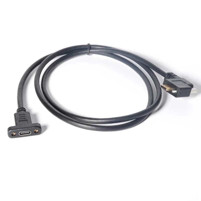 Tornillo de bloqueo: el cable de extensión USB-C con tornillo de bloqueo para montaje en panel proporcionará un mecanismo de acoplamiento más confiable y seguro para aplicaciones industriales y de otros usuarios.Está especialmente diseñado para equipos industriales.