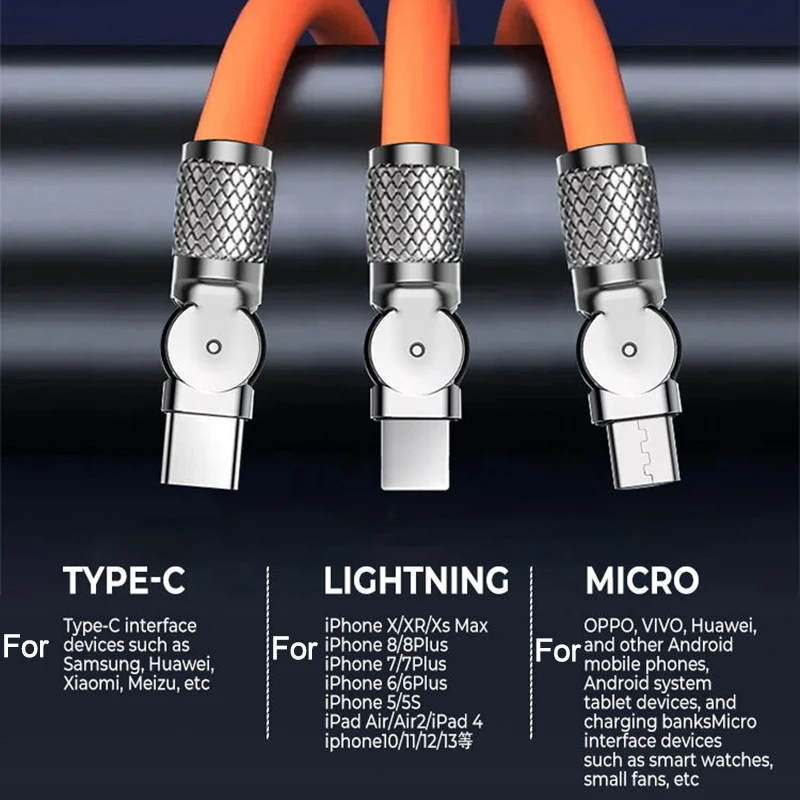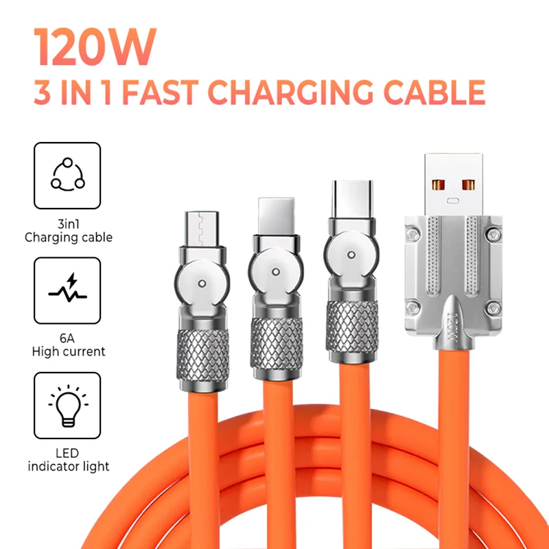 Cable USB de carga rápida 3 en 1 para móvil, cargador de 120W para Xiaomi Redmi, POCO, Huawei, Honor 6A, tipo C, Micro 3A, Cable de juego de datos para iPhone 2.4A