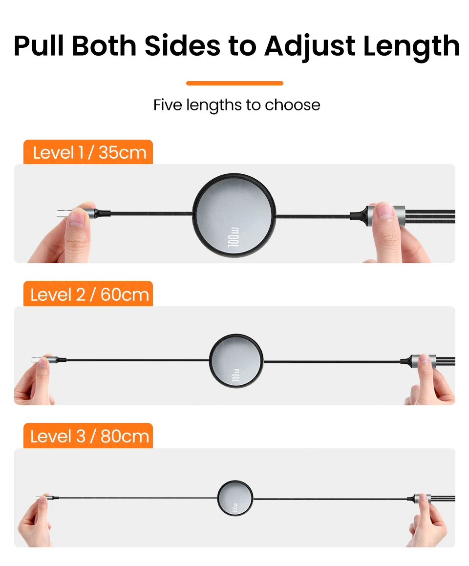 Comprar Cable USB de carga rápida para Huawei/Honor, Cable retráctil portátil 3 en 1, Micro USB tipo C, 6A, 100W, 3 en 1, para iPhone y Samsung