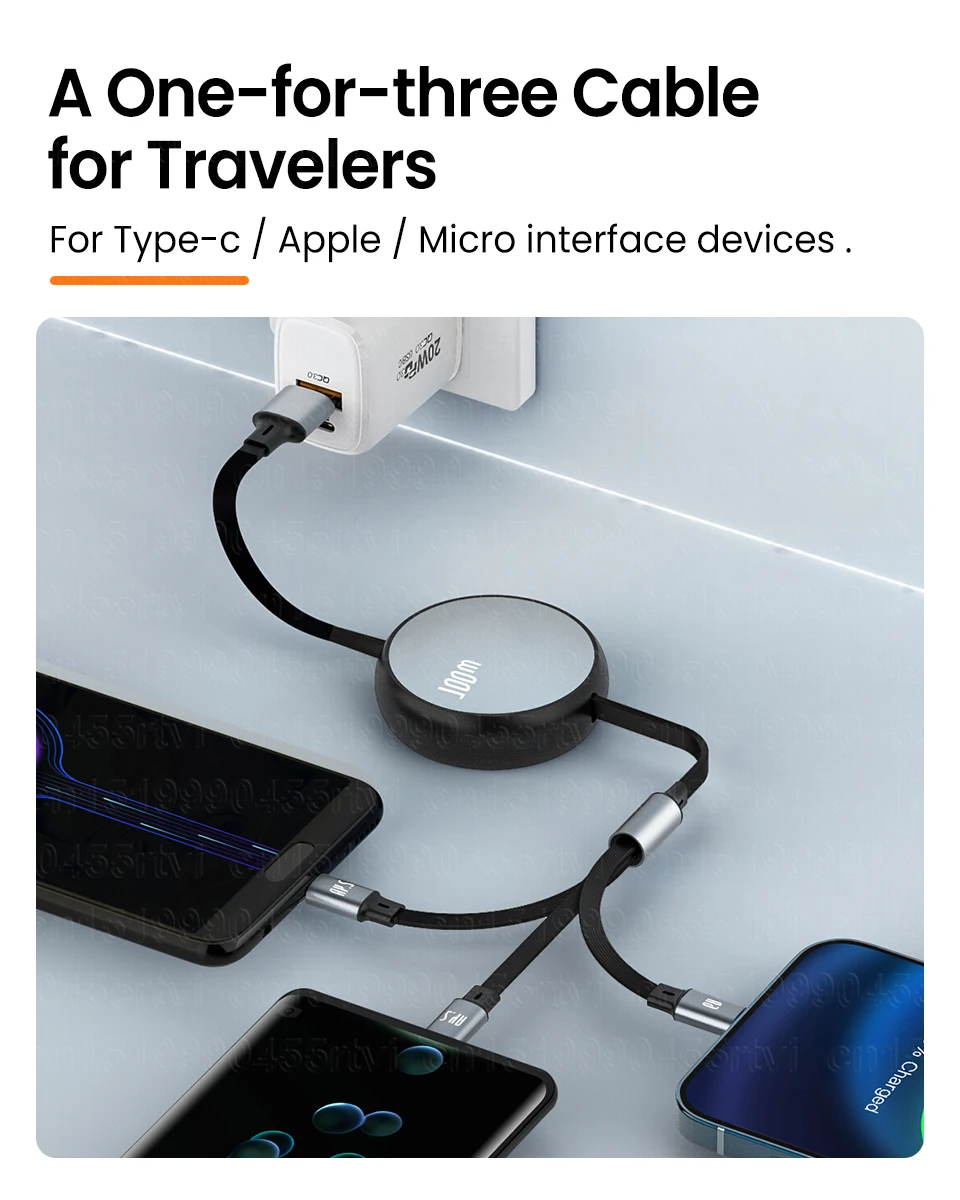Cable USB rápido 6A 100W 3 en 1 2 en 1 para Huawei/Honor retráctil portátil 3 en 1 Cable cargador Micro USB tipo C para iPhone Samsung