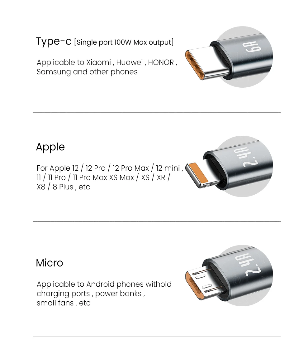 ● No es compatibleRápidoCarga para Samsung, otras marcas de teléfonos inteligentes solo se muestran en carga normal.