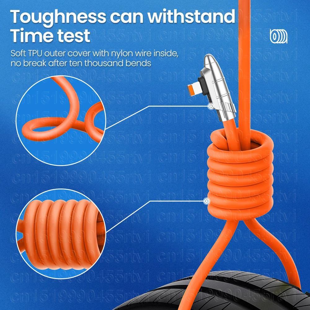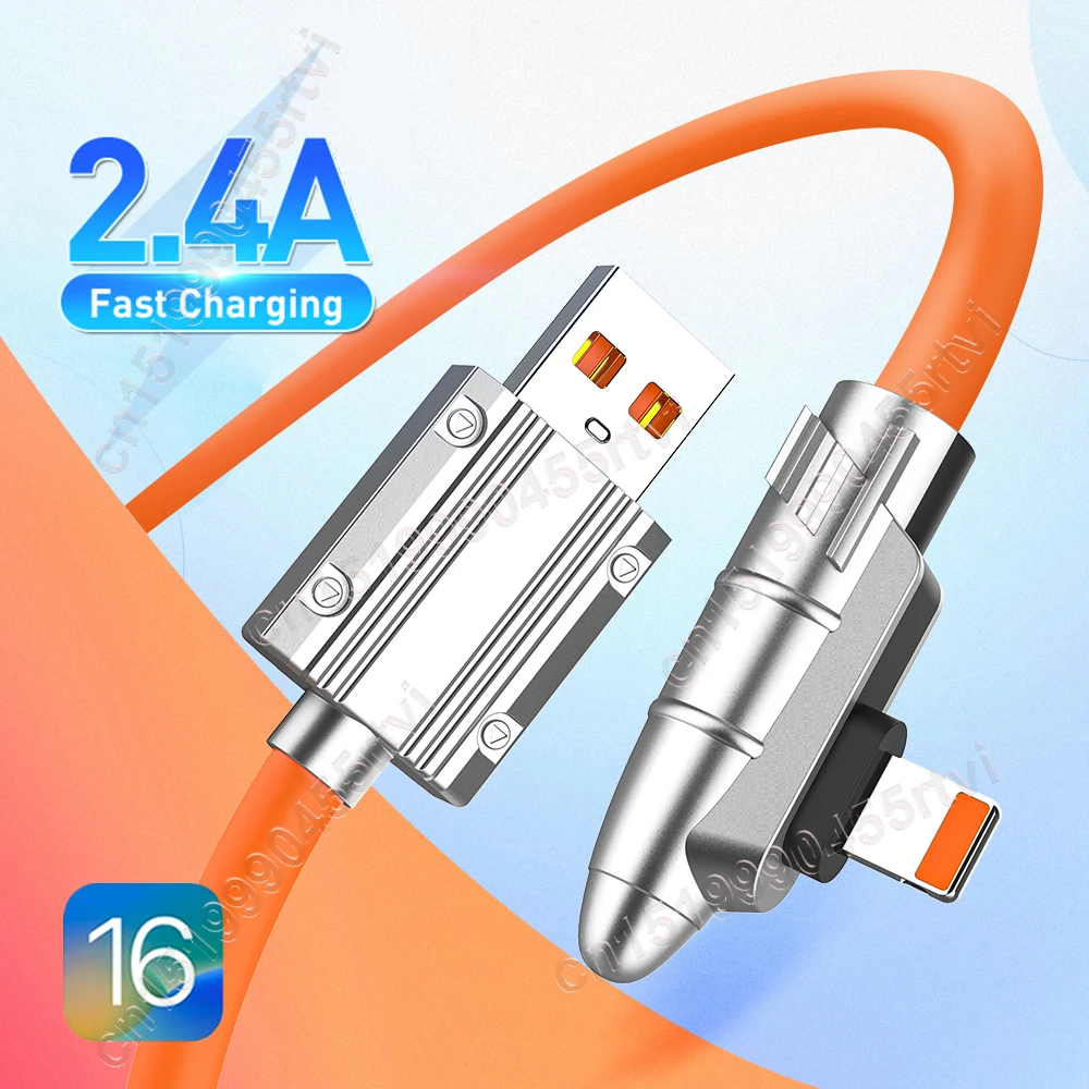 Comprar Cable USB de carga rápida para móvil, cargador de datos de silicona líquida, 90 grados, para iPhone 14, 13, 12, 11 Pro Max, XR, XS, 8, 7, 6s, 5s, 2.4A, 1/2M