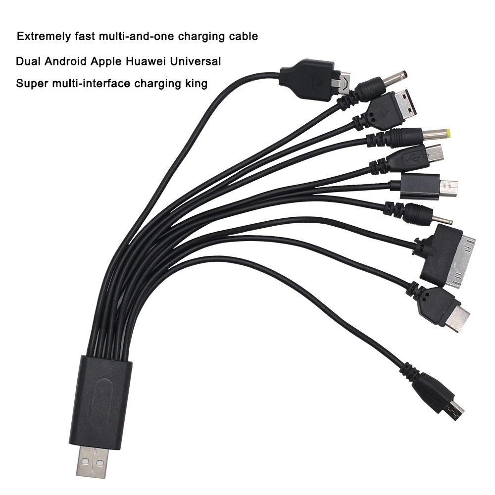 Cable USB 10 en 1, Cable DE DATOS USB portátil Universal para teléfono móvil, carga rápida, Cable de carga USB One Drag 10, 1 unidad