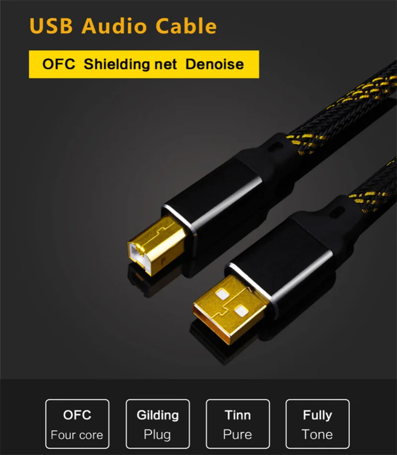 - -1 Cable USB de alta fidelidad de tipo A a tipo B, cable de datos USB de alta fidelidad, x 1, x 2