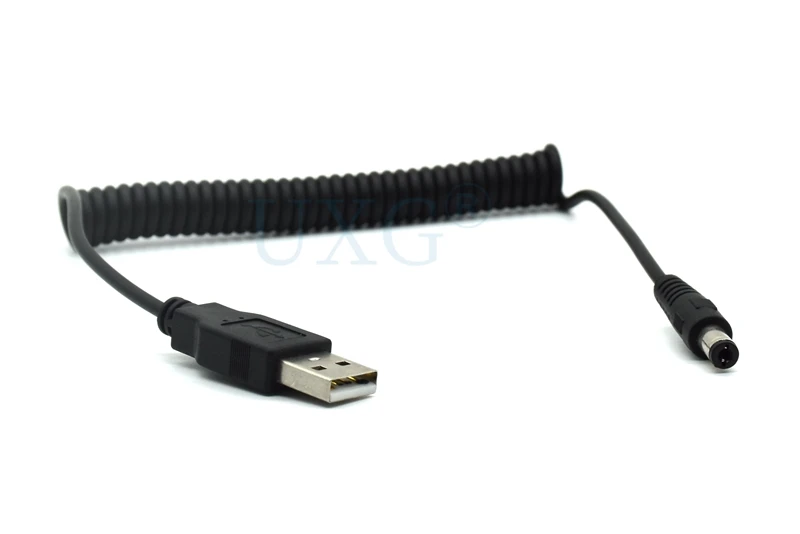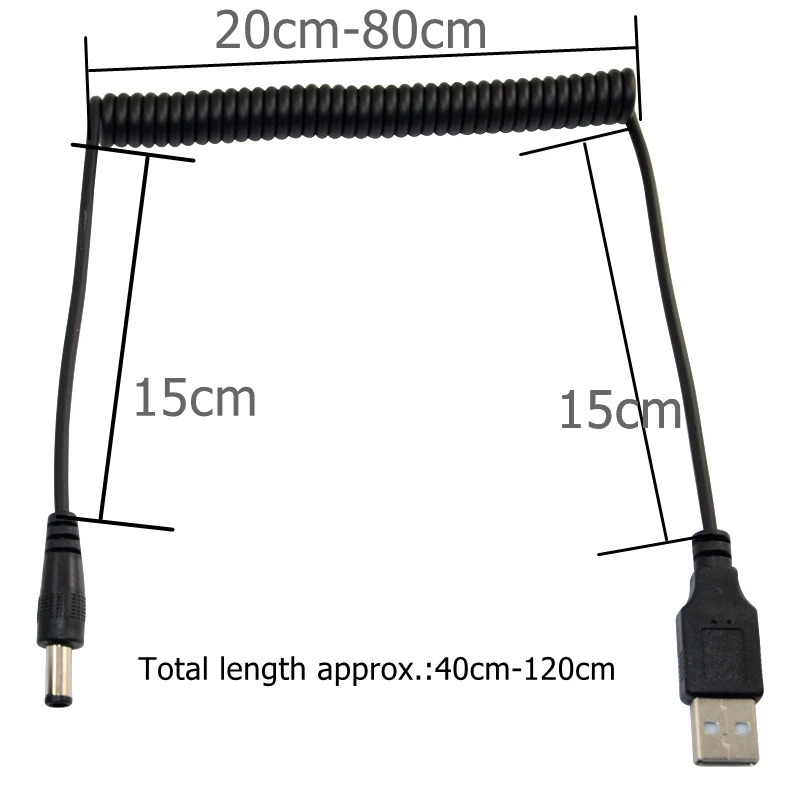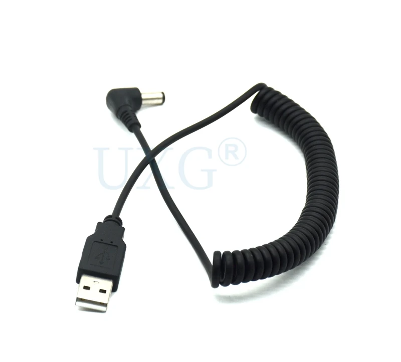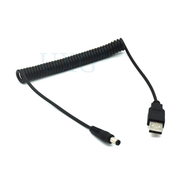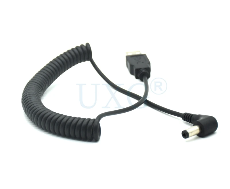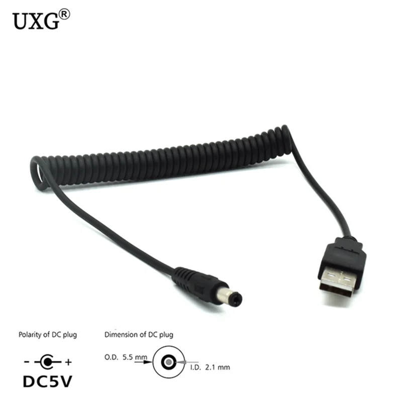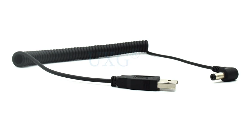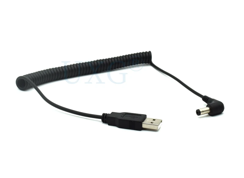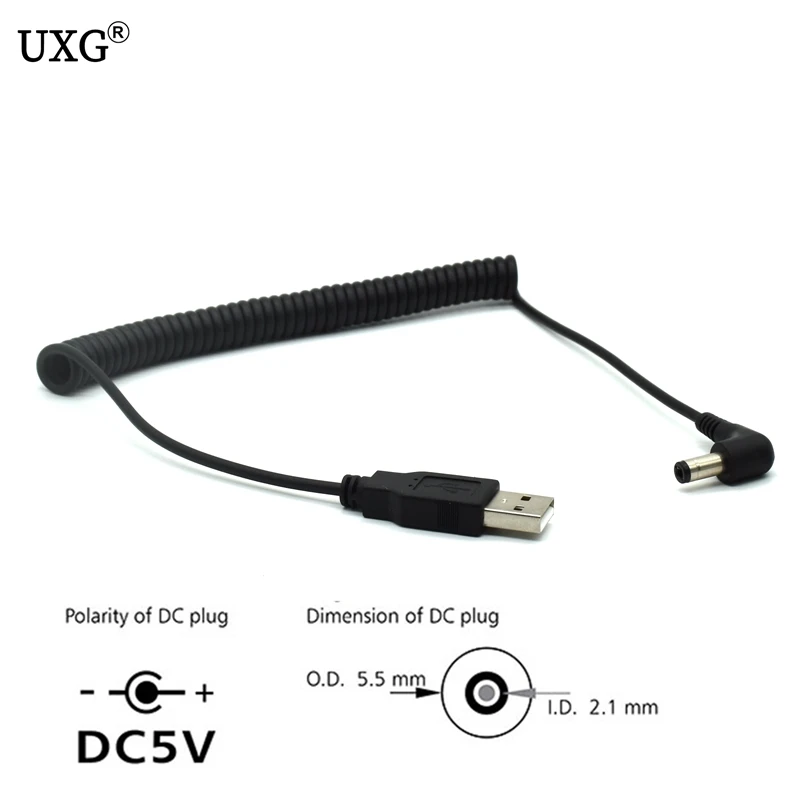 Comprar Cable USB en espiral de resorte de 4 pies/1,2 M, USB 2,0 A, enchufe macho A conector de alimentación de CC de 5,5mm x 2,1mm, Cable de carga negro DC 5,5x2,1, ángulo de 90