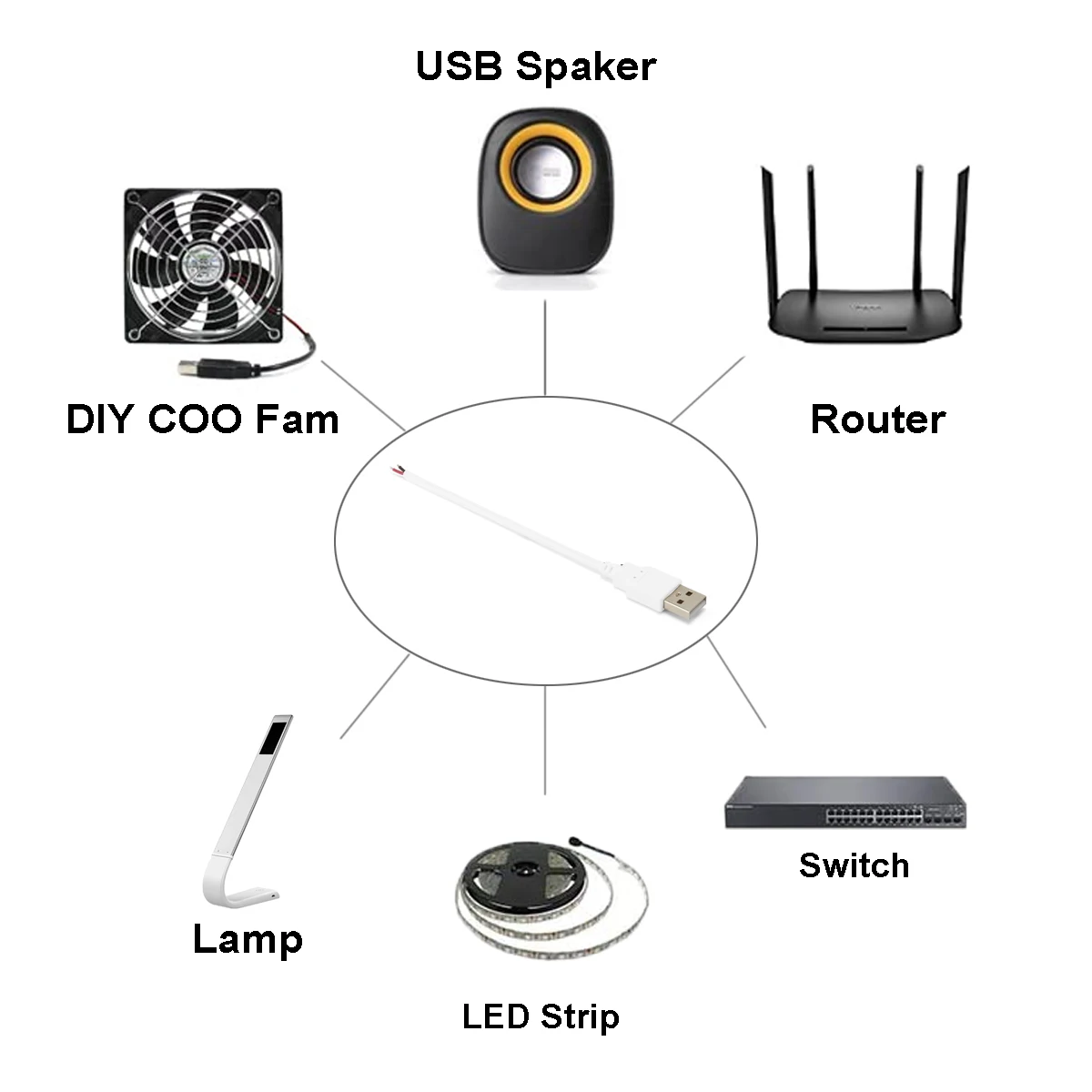 El cable USB 2.0 macho desnudo es un conector USB 2.0 tipo A macho + un cable de carga de 2 pines y 2 cables para bricolaje. Se puede utilizar en cualquier dispositivo con USB de 5 V.Como cable de alimentación para grabadora de conducción, lámpara de escritorio LED, ventilador USB, lámpara de noche y otros dispositivos eléctricos periféricos de computadora de baja potencia.