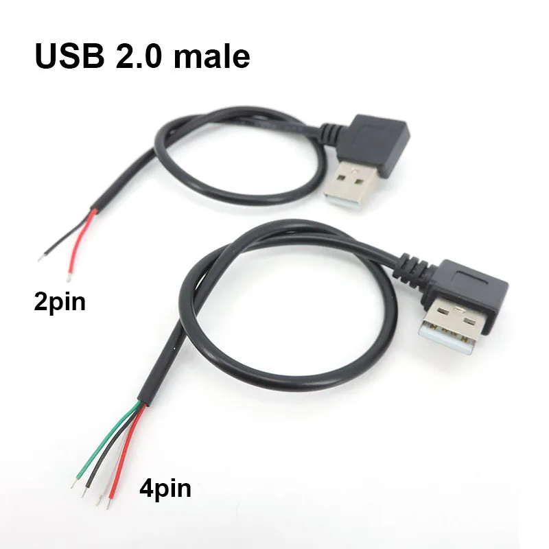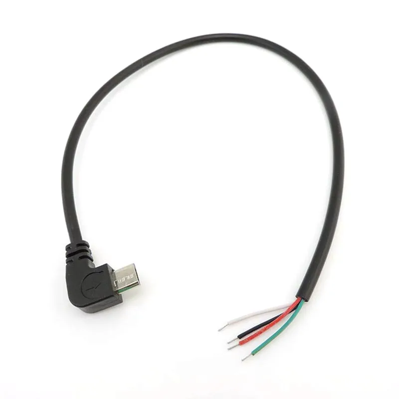 Cable de soldadura para reparación DIY, 2 cables, 4 cables, Micro USB 2,0 A, conector macho de cabeza de codo, línea de cable de extensión macho tipo C de 4 pines/2 pines