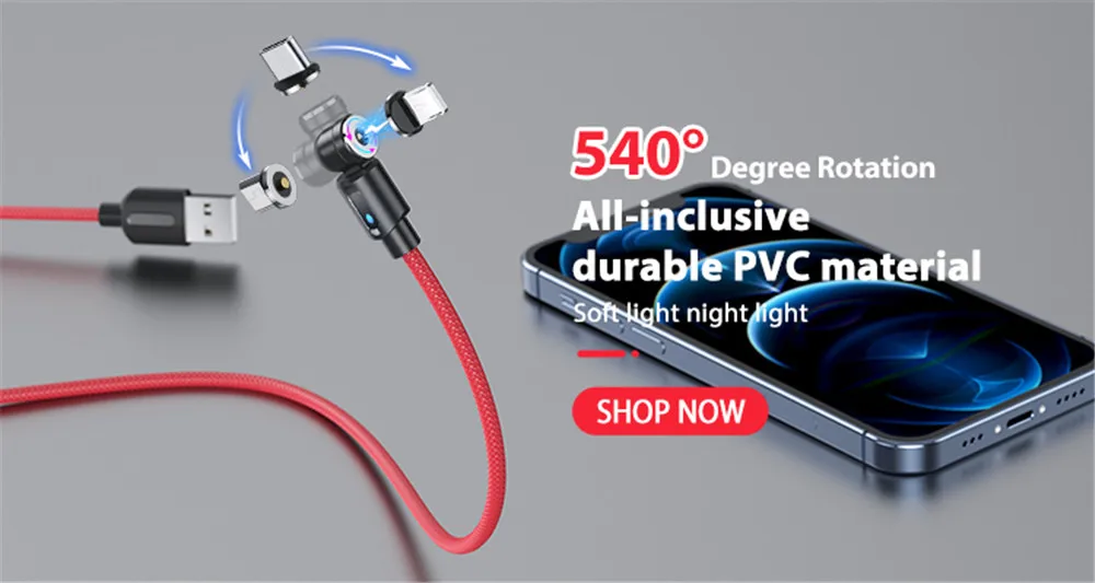 Comprar Cable USB magnético giratorio 540, Cable tipo C de carga rápida para iphone, Samsung, Cable Micro USB de carga magnética, Cable de datos para teléfono móvil
