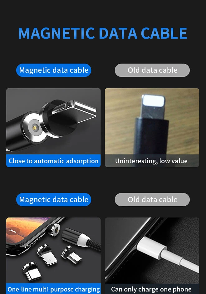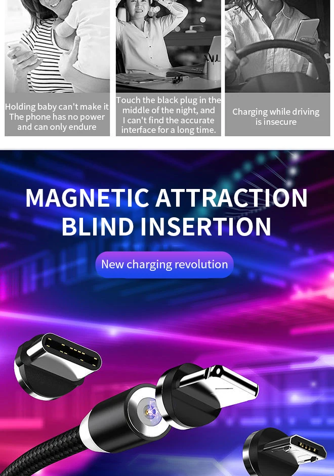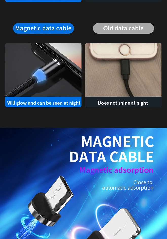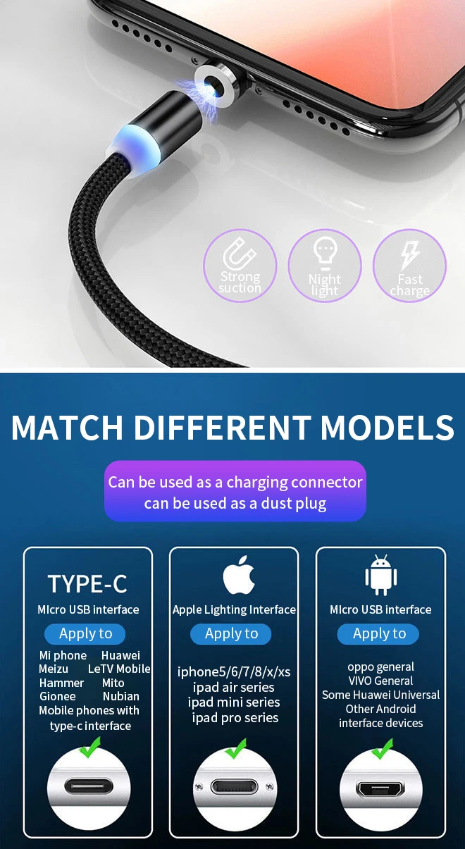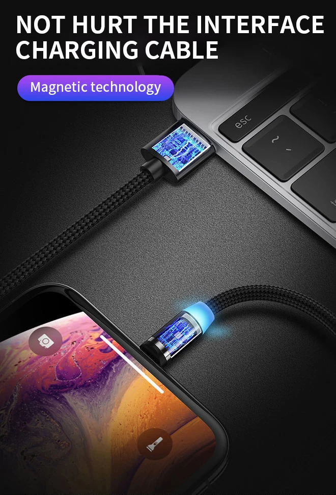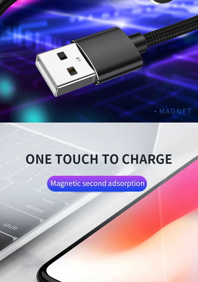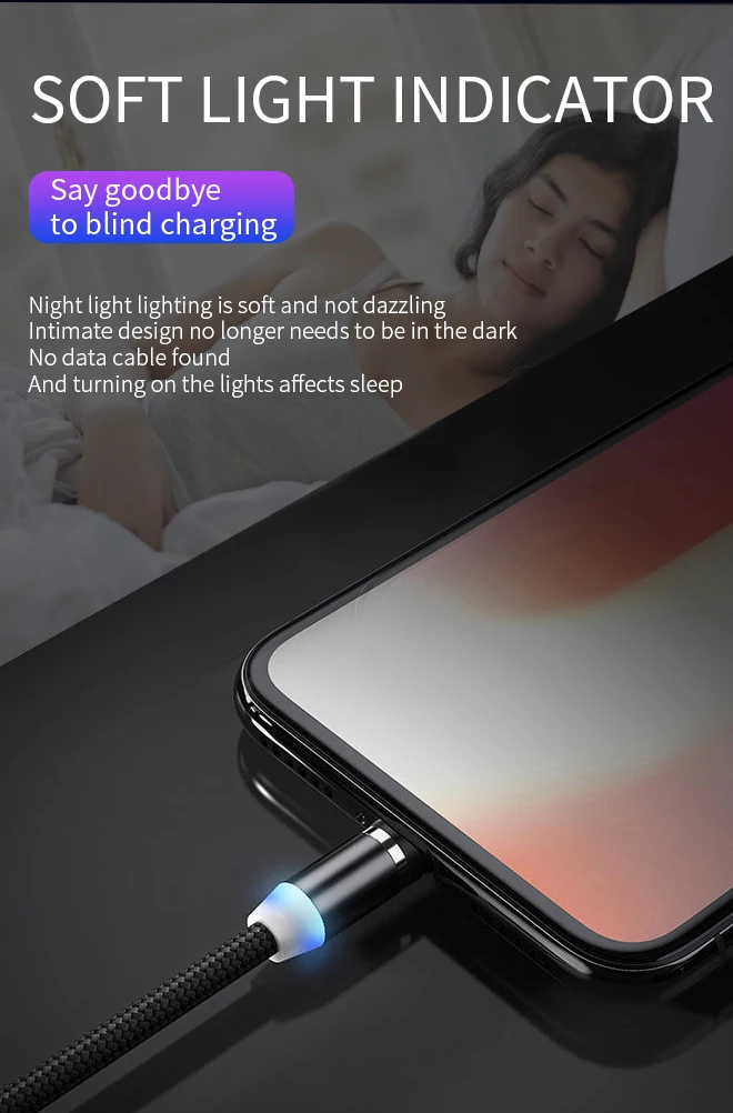 Comprar Cable USB magnético para iPhone 14, 13, 12, 11, cargador de teléfono Xiaomi Samsung tipo C, Cable LED de carga rápida, Cable Micro USB