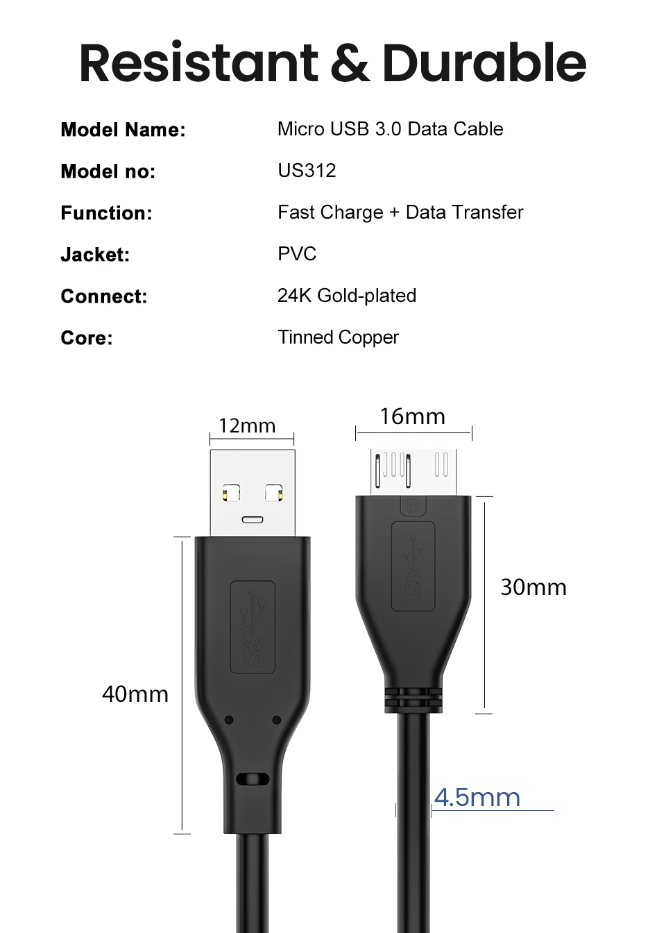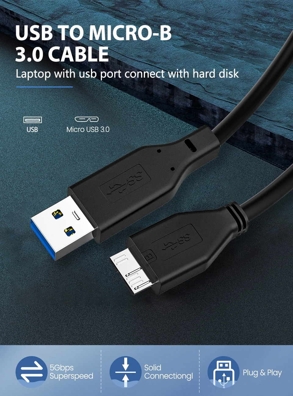 Comprar Cable USB Micro B Tipo A USB 3,0, Conector de Cable Micro B, 5Gbps, Cable de disco duro externo para disco duro, Cable de ordenador