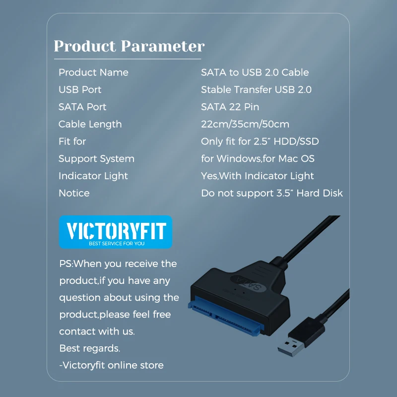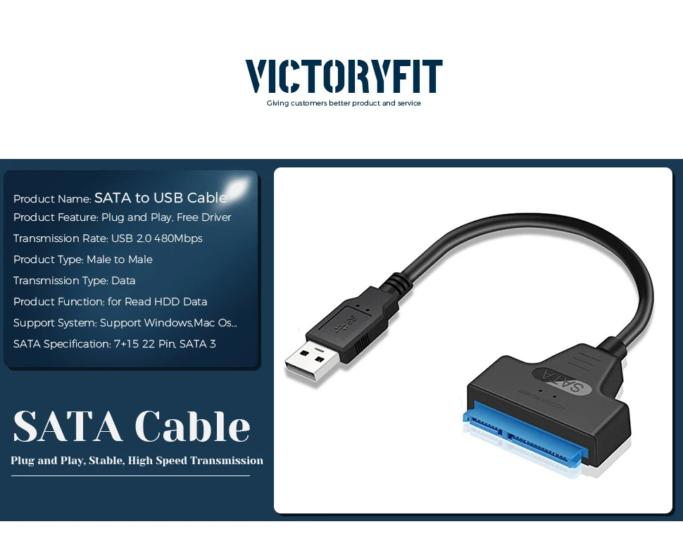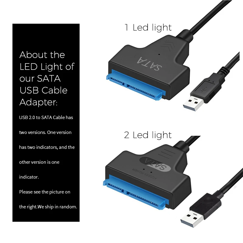 1. Adaptador SATA USB 2,0 Cable Disco duro externo USB a Serial ATA Convertidor de 22 pines Disco duro 480Mbps para HDD/SSD de 2,5 ".