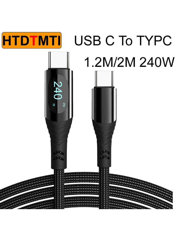 1.2M/2M 66W/100W/240W Nylon USB A Type C To USB C Cable PD 3.1 LED digital display Fast Charging Charger Wire For Macbook Pro Xiaomi Samsung Laptop USBC Cord