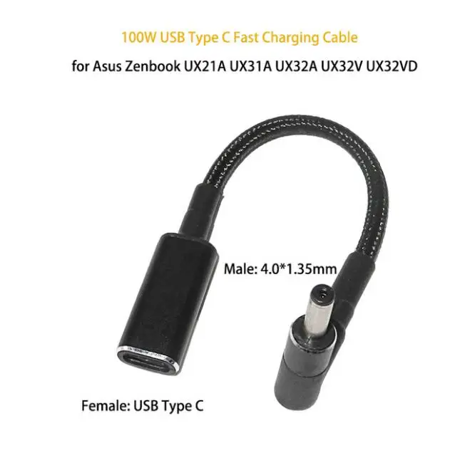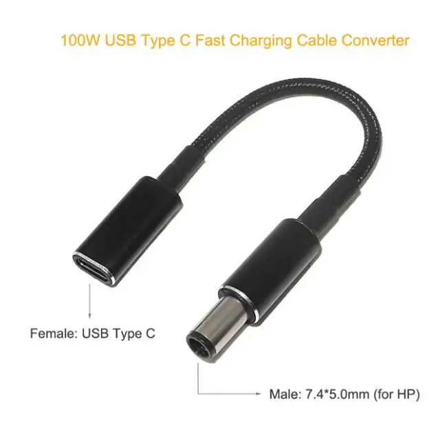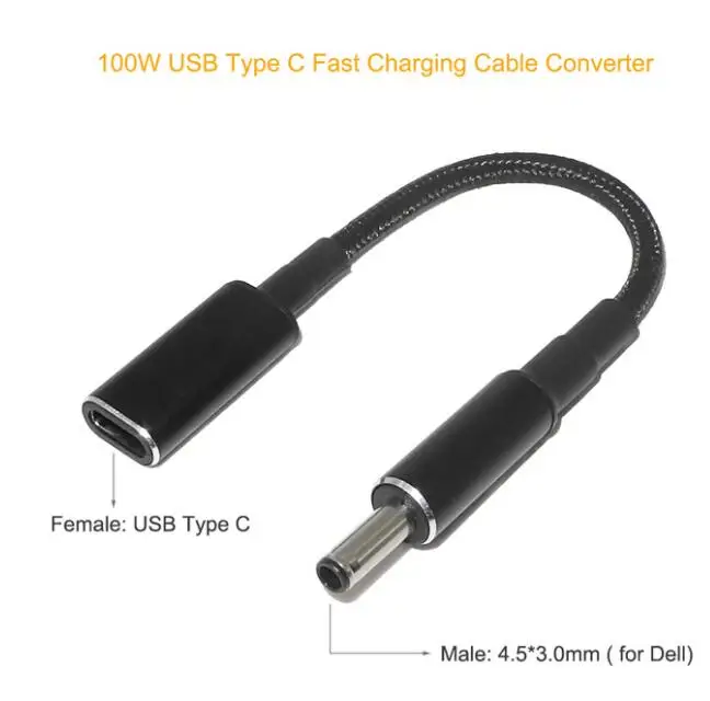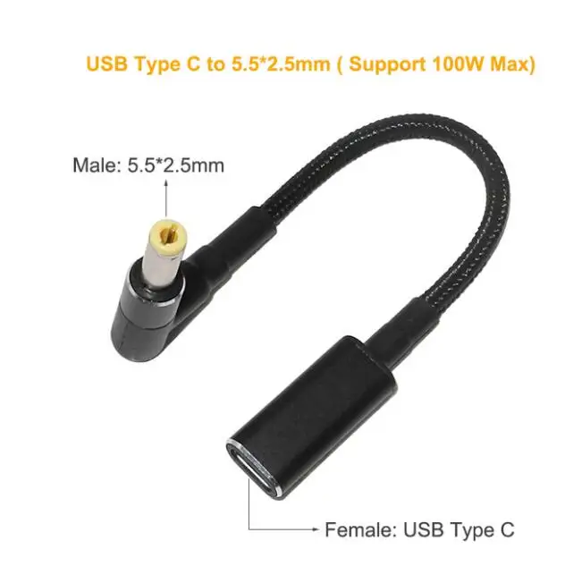 Cable USB tipo C de 100W, Cable convertidor de carga para ordenador portátil PD para Asus Lenovo Hp Dell, fuente de alimentación para portátil, conector Jack de enchufe de CC