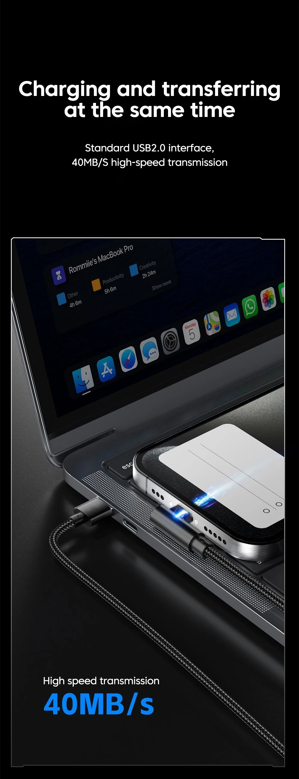 Nombre: Cable de datos de juego móvil curvado 6A