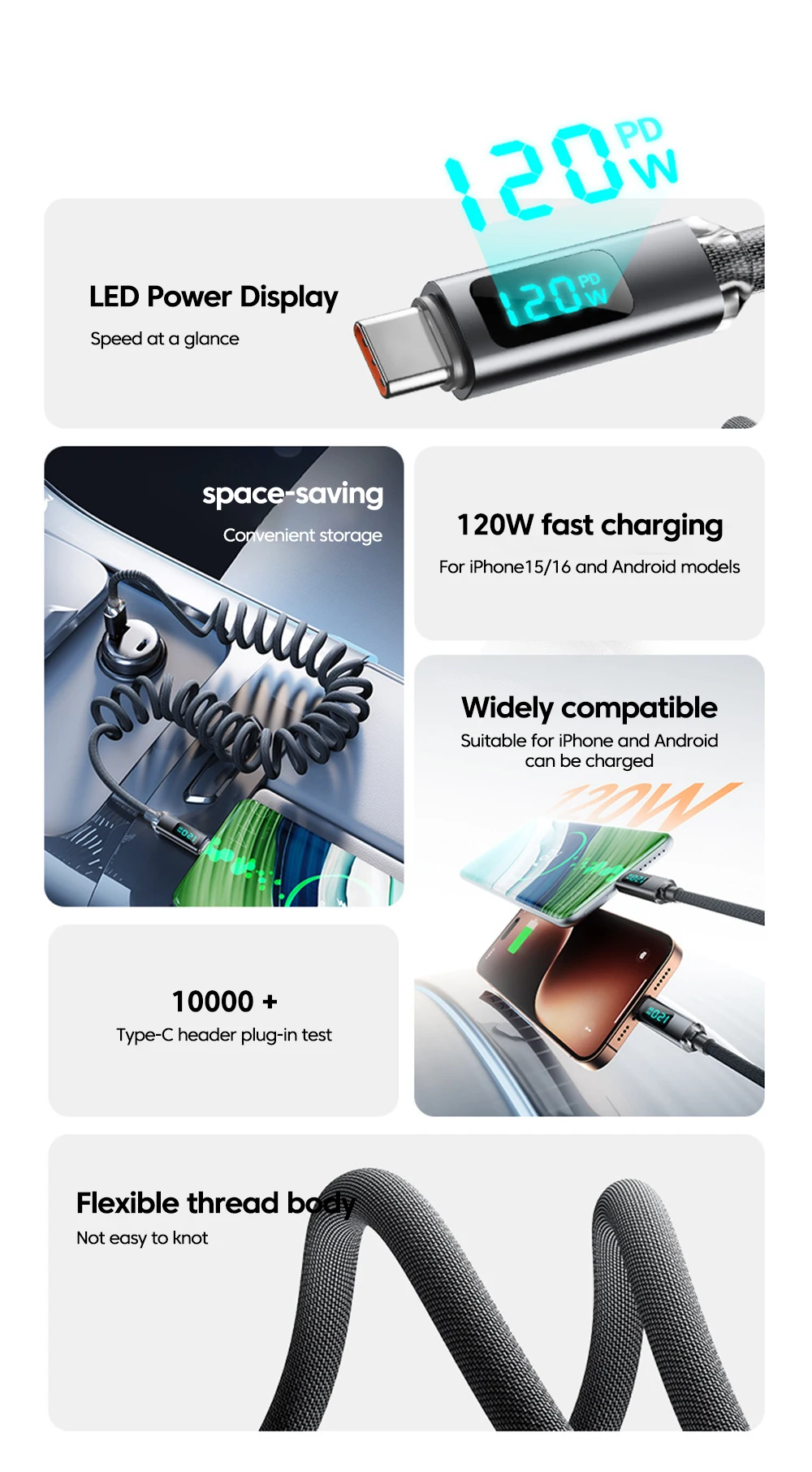 Cable USB a tipo C de 120W, 6A, Cable de datos de carga rápida para iPhone 15 16, Samsung, Huawei, cable cargador tipo C a tipo C