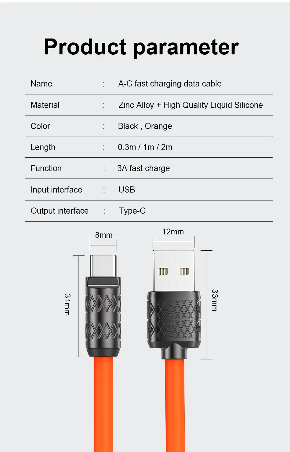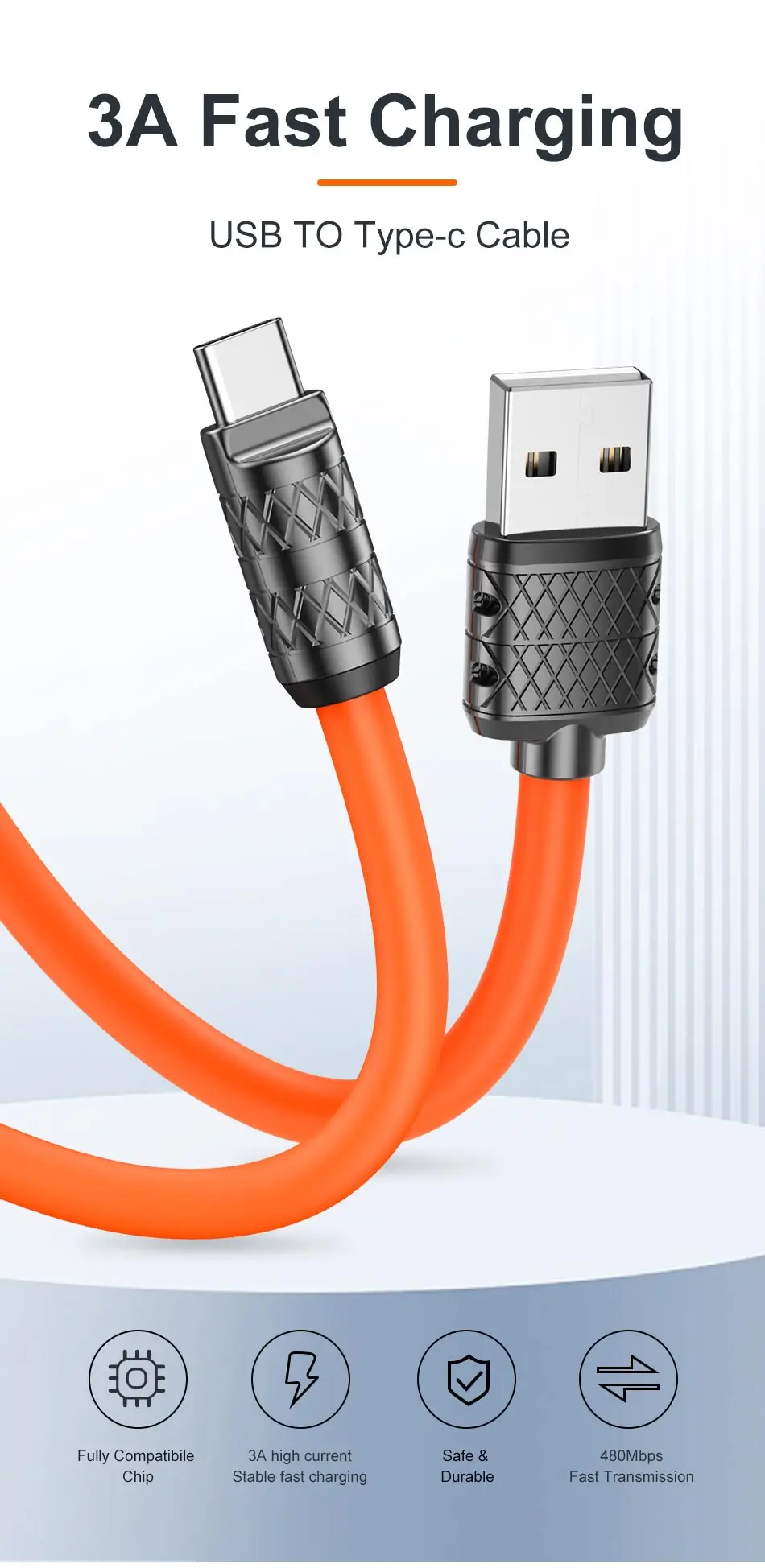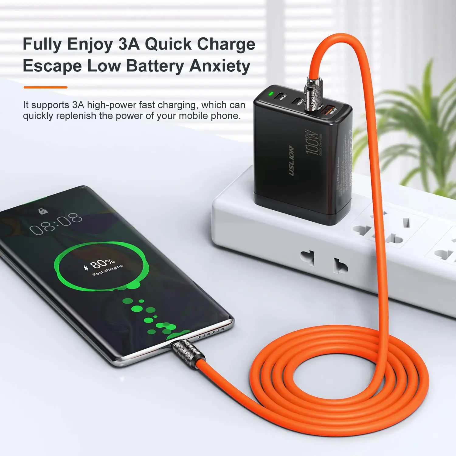 Comprar Cable USB tipo C 3A para Huawei P40 P30, Cable de datos de silicona líquida para Xiaomi 14 Pro, Redmi Oneplus, POCO, Samsung 0,3 M, 1M, 2M