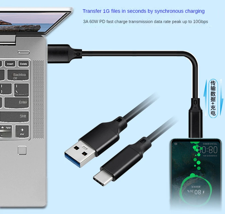 Cable cargador USB tipo C 60W QC 3,0 velocidad 10G tipo C Cable USB 2m 3A PD para interruptor Nitendo USB3.1 Gen1 Cable tipo C Carga rápida para Samsung Huawei Xiaomi