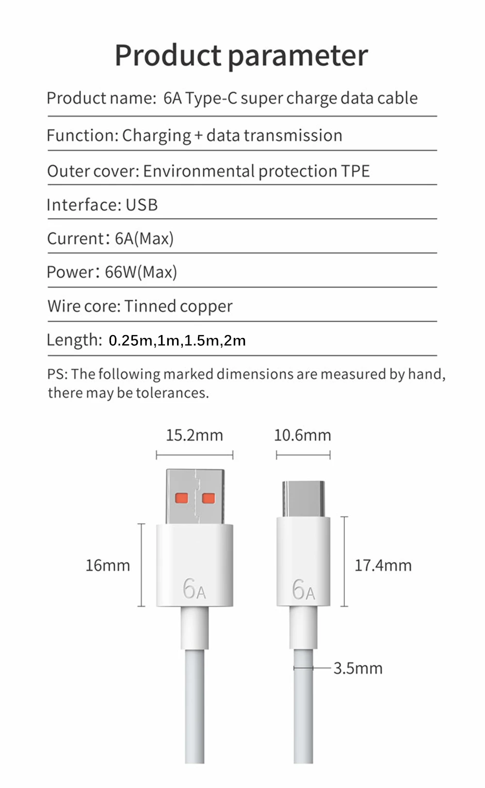 Cable USB tipo C 6A 66W para Xiaomi 10 11 12 13 Redmi K50 K60 POCO Huawei Mate 50 P60 Honor 80 90 Realme GT Samsung Moto teléfono Android cargador súper rápido Cable USB C 0,25 m 1 m 1,5 m 2 m