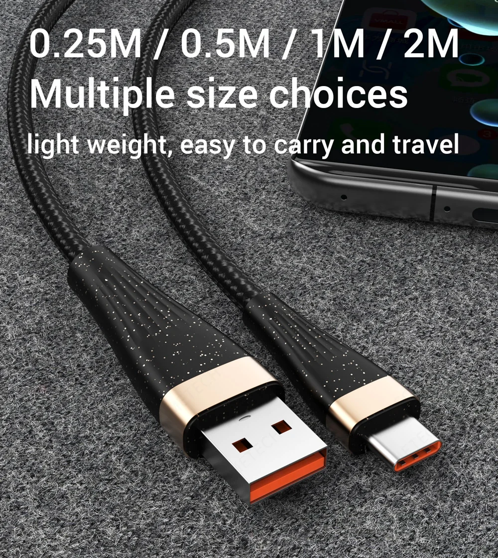Nombre del producto: 66W 6A Negro-Oro USB Tipo C Cable