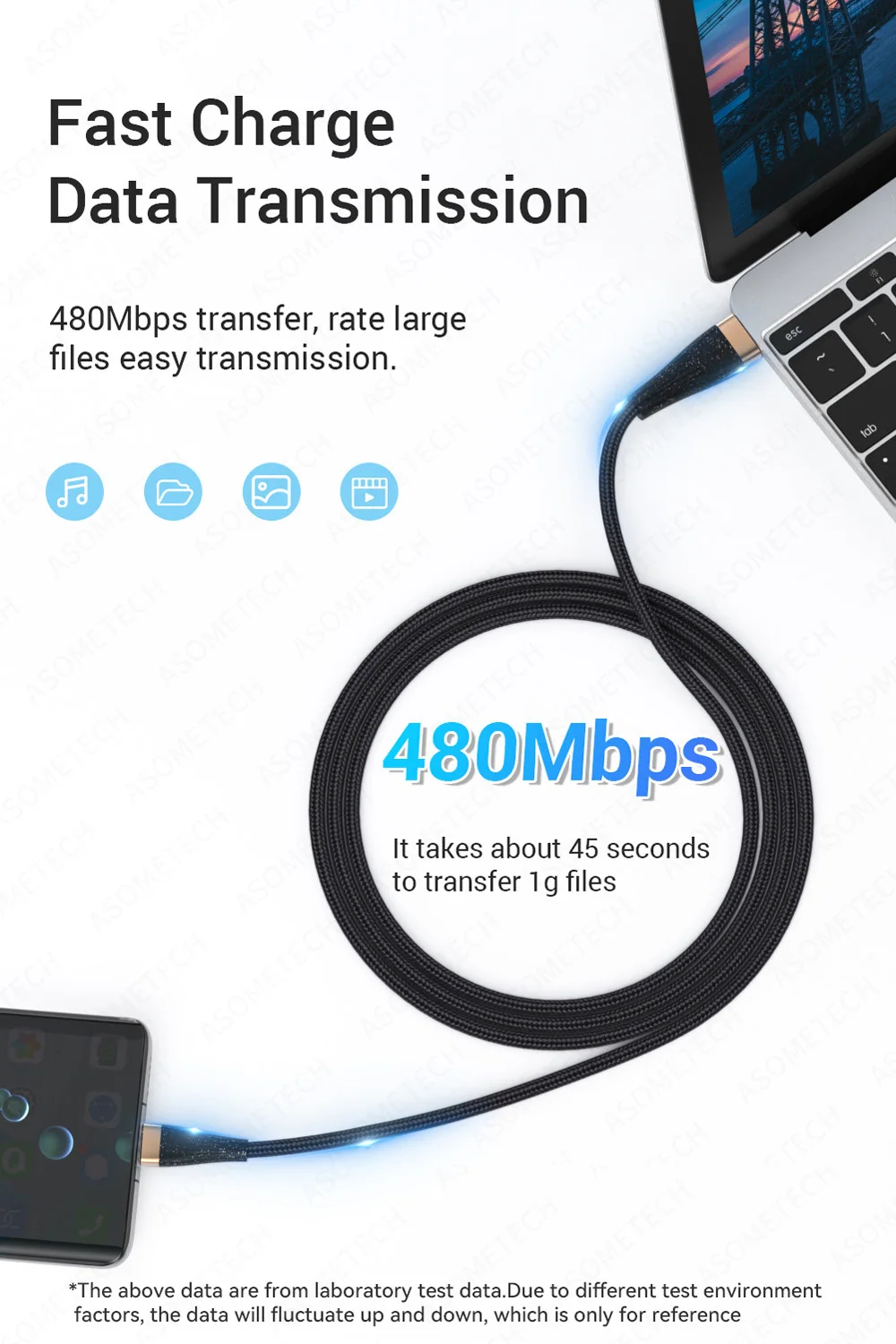 Cable de carga ASOMETECH 66W 6A USB tipo C