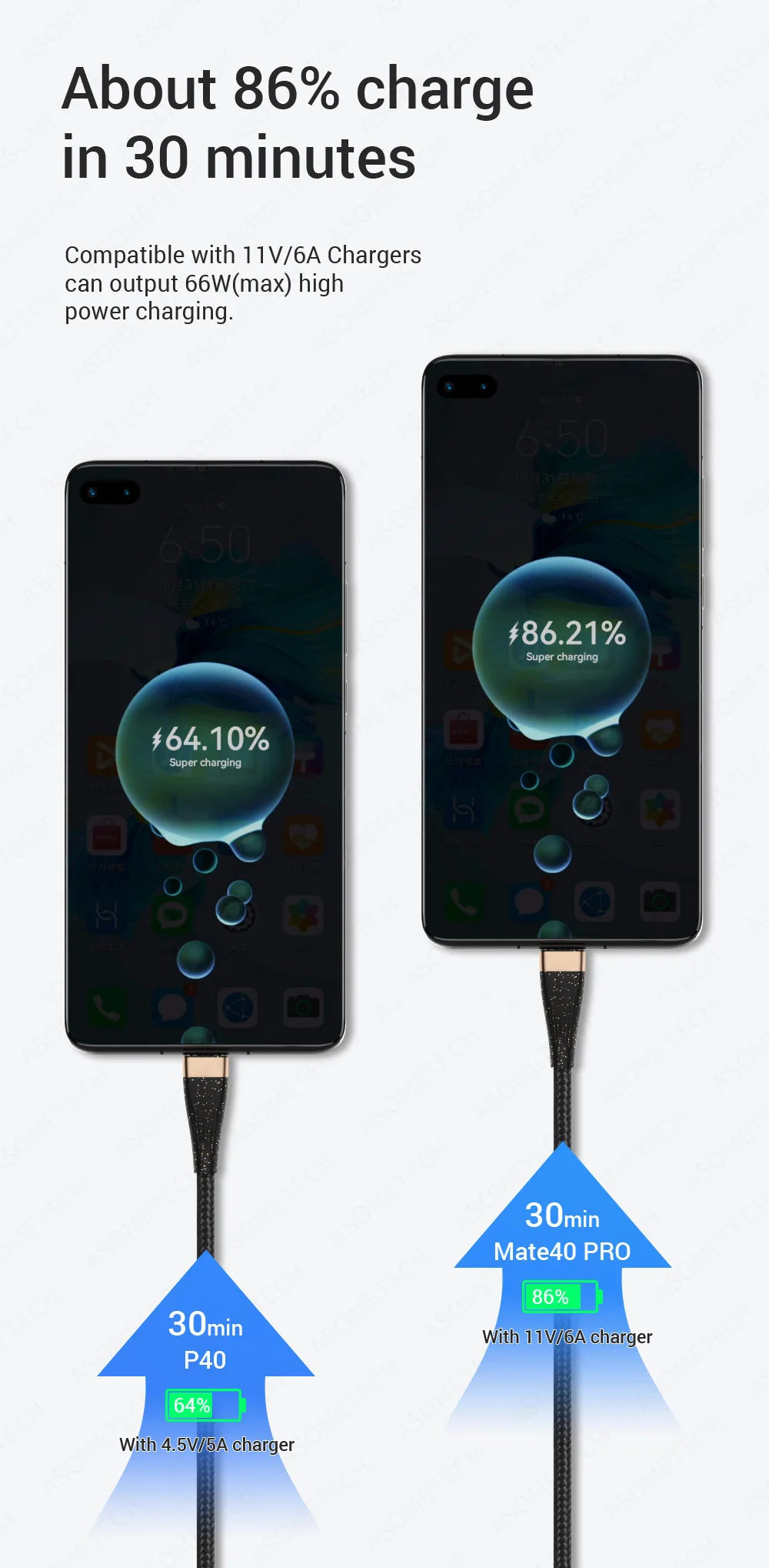 Para teléfonos móviles Huawei 66W / 40W/22,5 W SCP carga súper rápida.