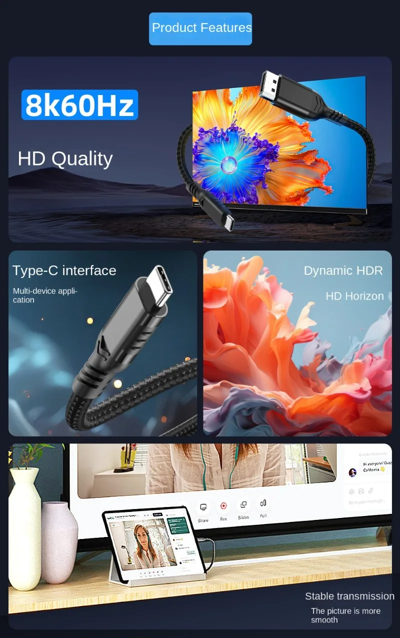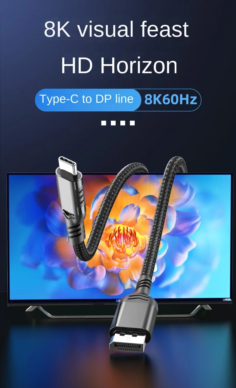 Comprar Cable USB tipo C a DisplayPort 1,4, 8K, 60Hz, 3/4 Thunderbolt, Compatible con portátil Lenovo, HP MateBook