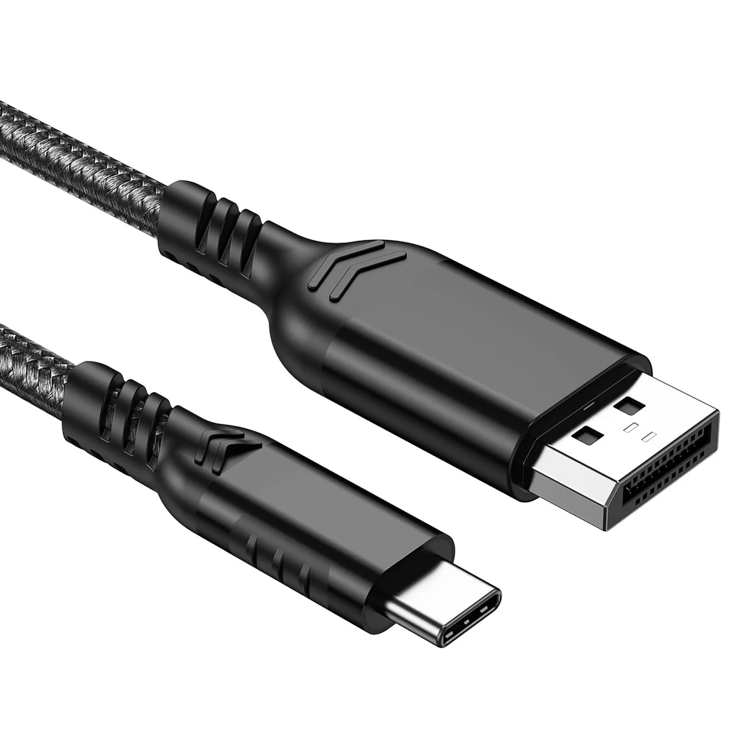 PLUG & PLAY-Transmita contenido 4K UHD desde su computadora portátil de la (como MacBook Pro/Air, Surface), tableta o teléfono a una pantalla más grande, como monitores, TV, proyecto con entrada DisplayPort. No requiere controlador, conéctalo y juega. Soporta resoluciones de hasta 8K @ 60Hz incluyendo 4K @ 144Hz, 2K @ 240Hz, 1080P, 720p, 1600x1200, 1280x1024 para monitores o proyectores de alta definición;ESTABILIDAD SUPERIOR: El chip IC avanzado integrado convierte la señal digital de la USB-C en señal DisplayPort; el conector niquelado garantiza una transmisión de datos segura de alta velocidad sin interferencias y la moldura uni-body lo hace irrompible. La carcasa de aluminio disipa el calor de manera eficiente para un uso a más largo plazo. El cable de cobre más grueso minimiza claramente la pérdida de señal con máxima conductividad.Carcasa de aluminio, diseño trenzado de nailon: funda de cable trenzado de nailon, no se preocupe por deshilacharse, calentarse, doblarse. Agarre antideslizante para el pulgar, se enfría cuando se enchufa. Piezas de metal aerodinámicas perfectamente conectadas, a prueba de golpes. Longitud perfecta para la configuración de la oficina en casa con un lazo de Velcro adicional para viajes. Elegante funda negra metálica.