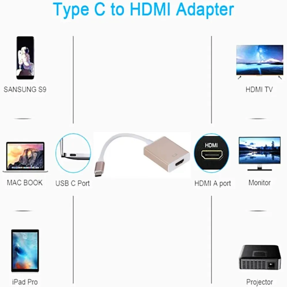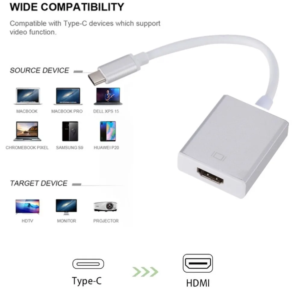 Comprar Cable USB tipo C a HDMI, convertidor HD 4K tipo C a HDMI, adaptador para MacBook Chromebook, Samsung y Xiaomi
