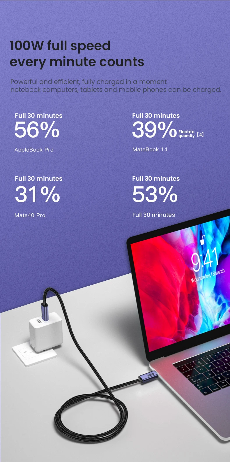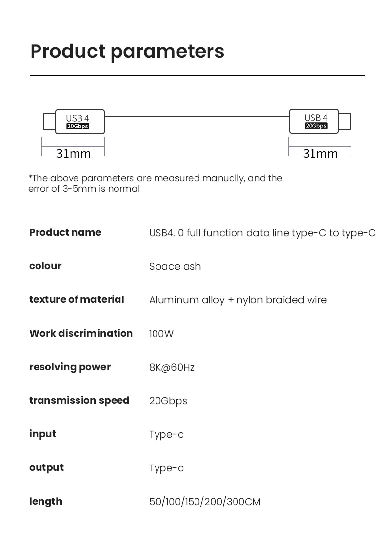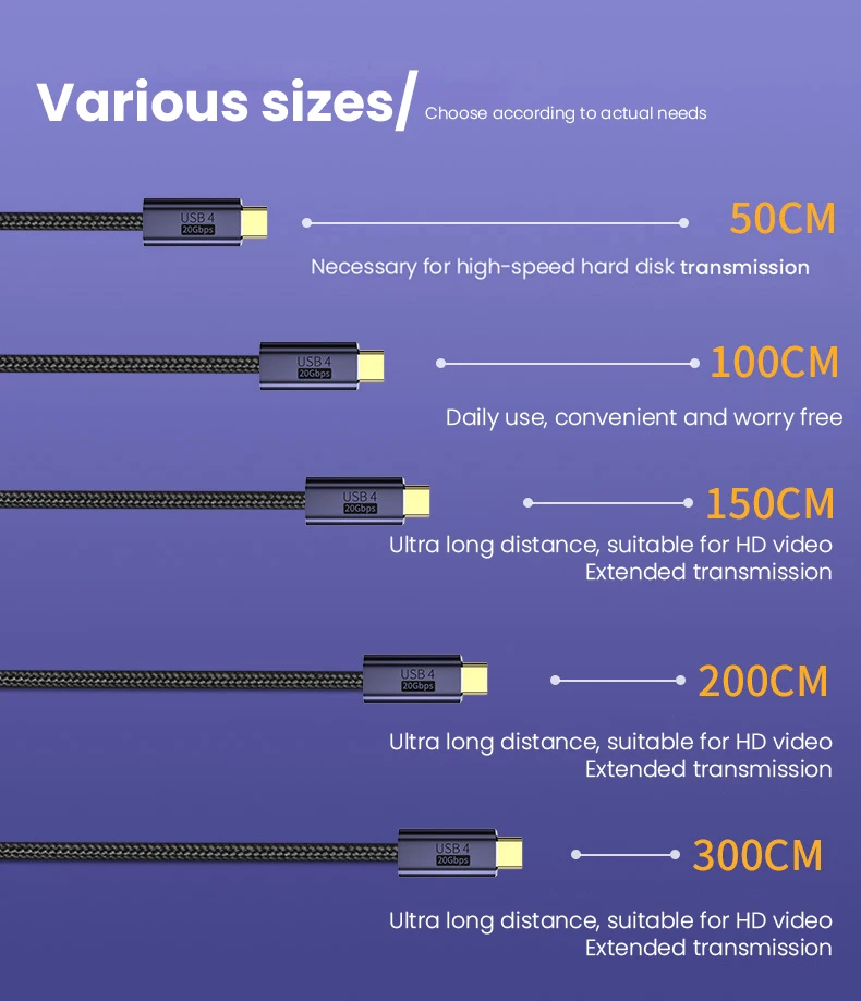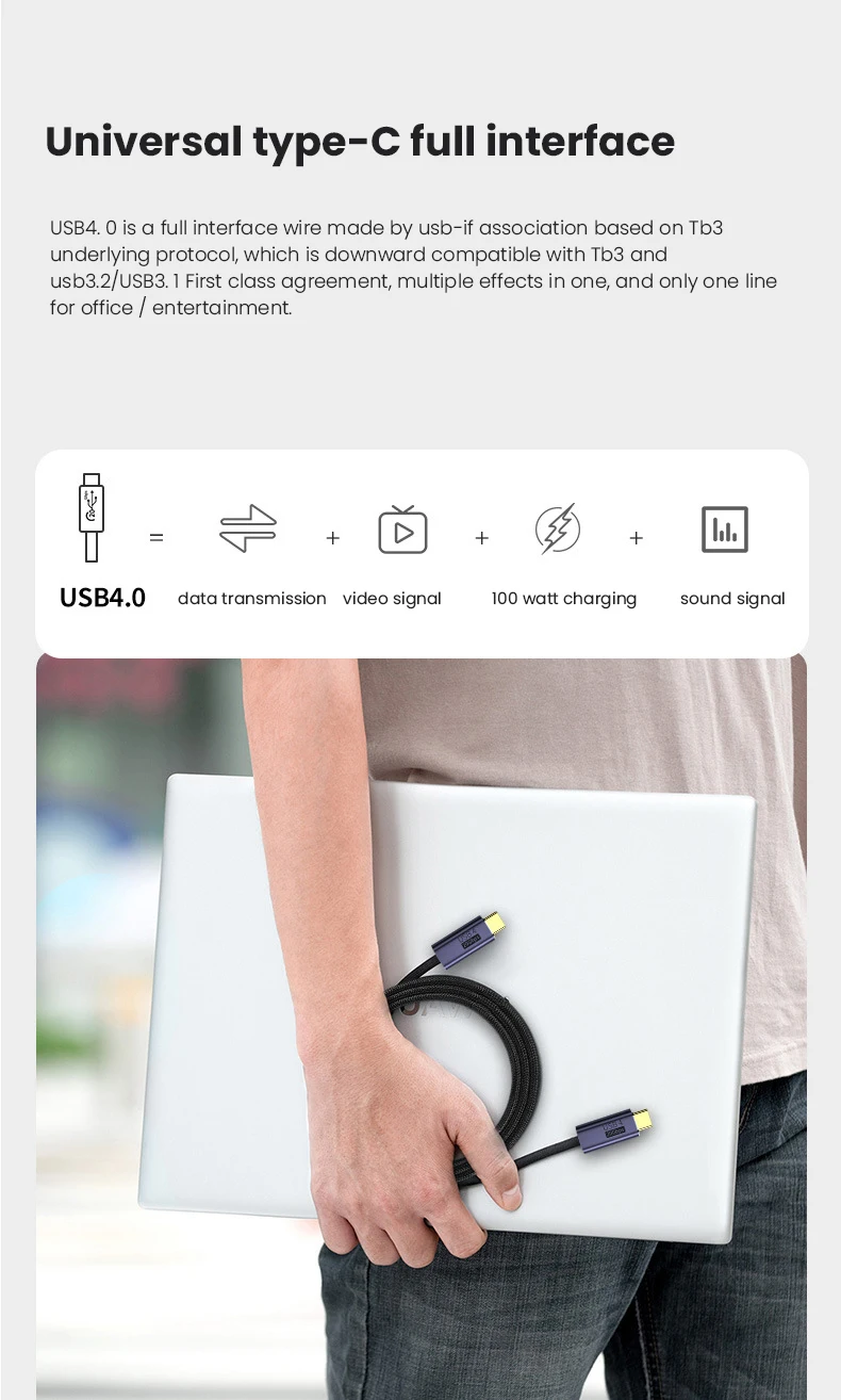 Comprar Cable USB tipo C a tipo C, 100W, 4,0, para Macbook Pro, 20Gbps, 8K @ 60HZ
