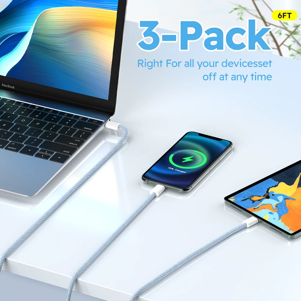 Con la longitud perfecta de cable, disfrute de la sincronización y carga de datos en cualquier momento y en cualquier lugar, sin tener que preocuparse por llevar el cable a cualquier parte. Tiempo de carga súper rápido: garantiza una carga segura de hasta 2,4 A., Nylon trenzado para una durabilidad extrema: este cable de carga USB C tiene una vida útil probada de más de 4000 curvaturas y es más confiable que otros cables de datos en su rango de precios.Los cables tipo C trenzados de nailon de primera calidad añaden durabilidad adicional.