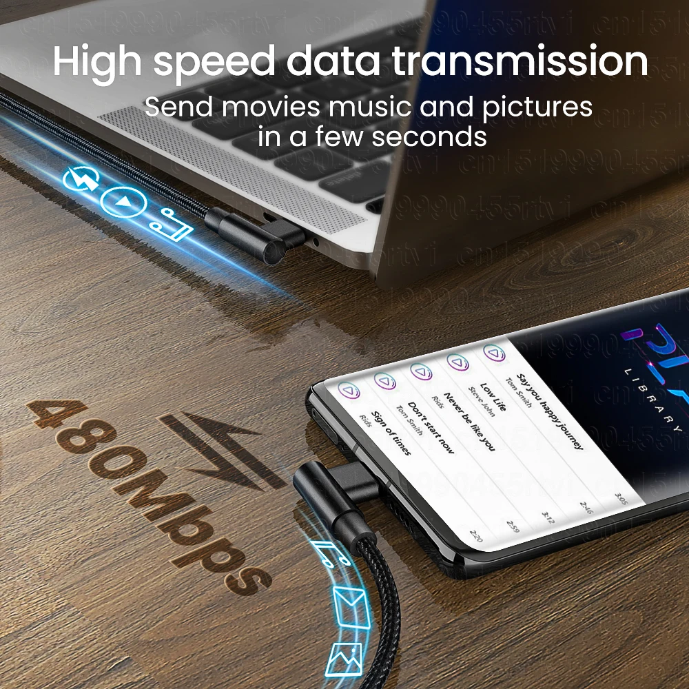 Doble codo USB tipo C a USB C Cable PD 60W carga rápida 4,0 3,0 USB-C Cable de carga rápida para Macbook Pro Samsung Xiaomi 2/3m