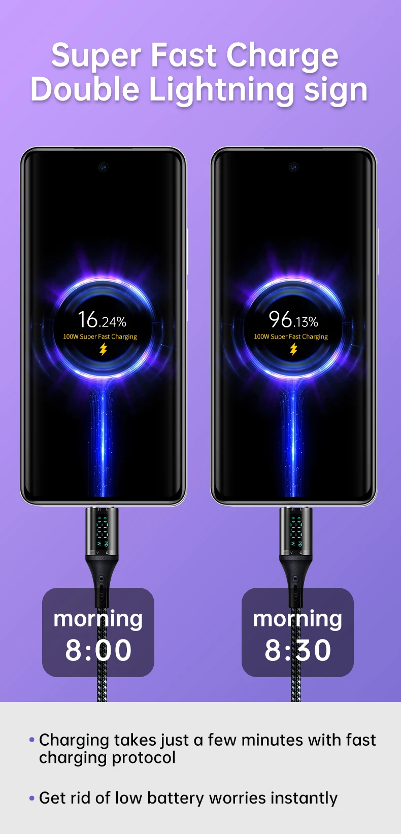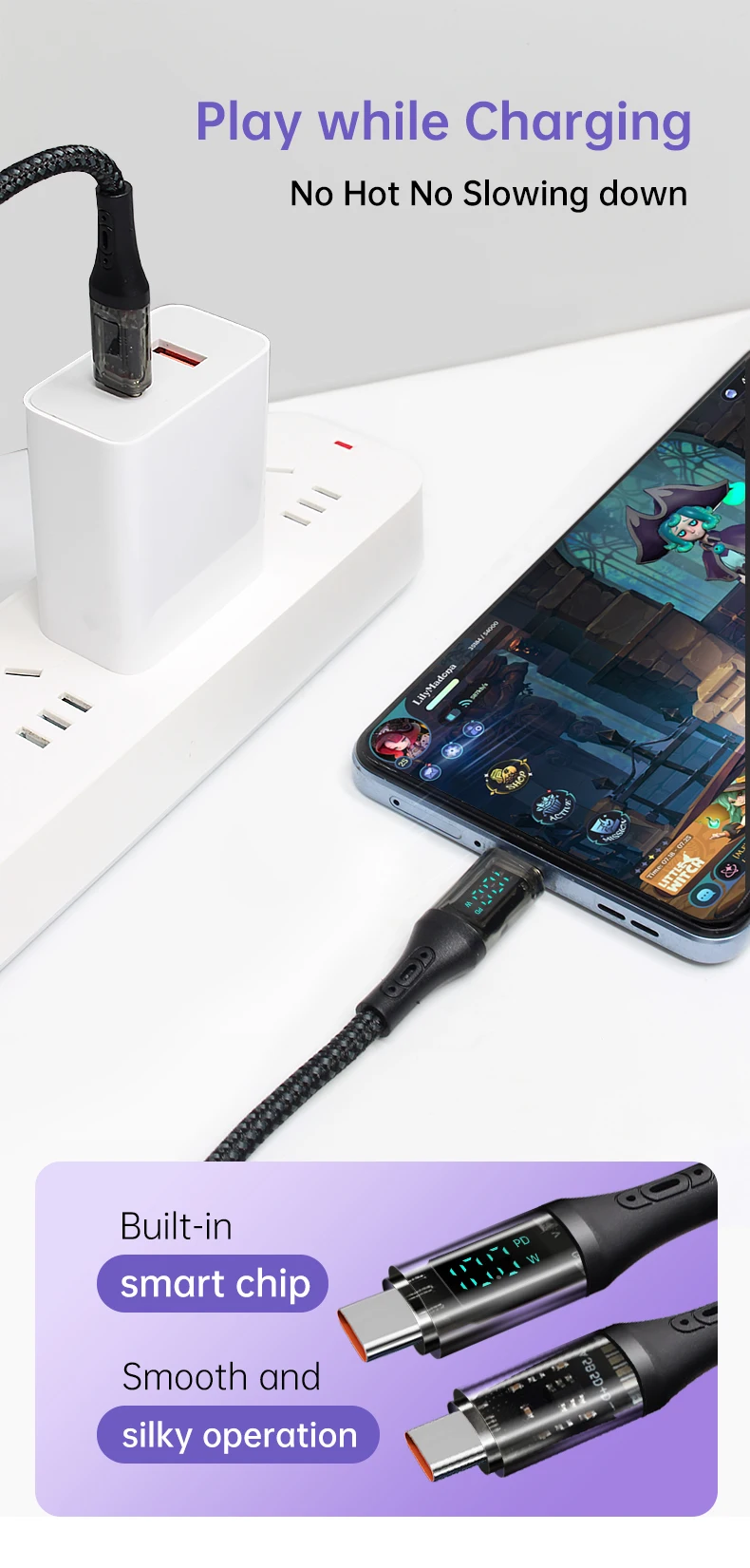 Este cable integrado en el chip inteligente E-marker, visualización en tiempo real del estado de carga
