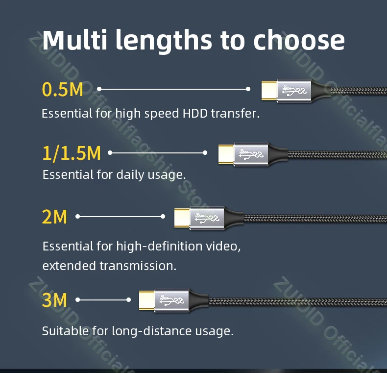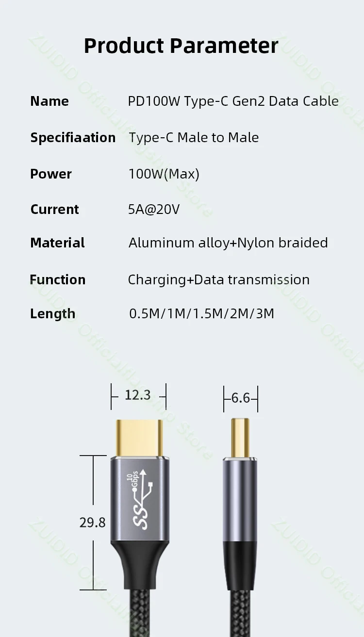 Cable USB tipo C a USB C 3.1 Gen2 de 10 Gbps PD 100W 5A QC4.0 3,0 Cable de carga rápida para MacBook 4k 60 Hz tipo C Cable de vídeo 1/2/3 M