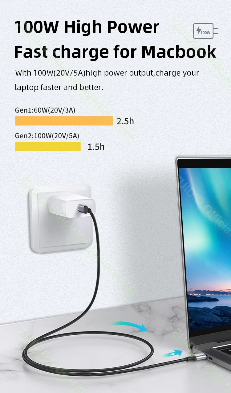 Comprar Cable USB tipo C a USB C 3,1 Gen2 de 10Gbps PD 100W 5A QC4.0 3,0 Cable de carga rápida para MacBook 4k 60Hz tipo C Cable de vídeo 1/2/3M
