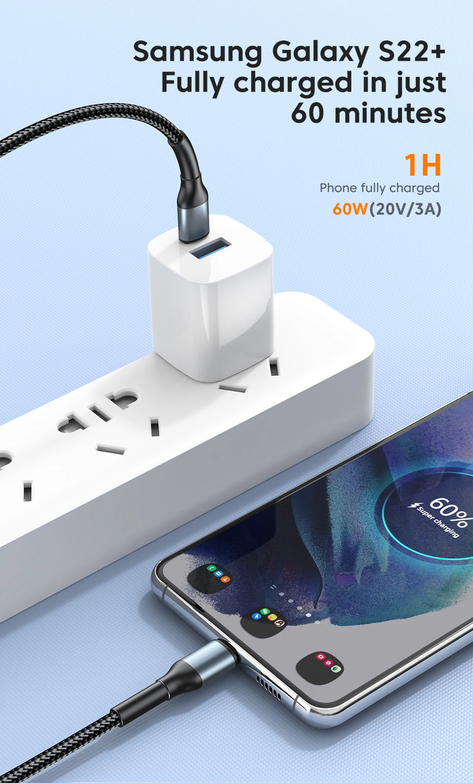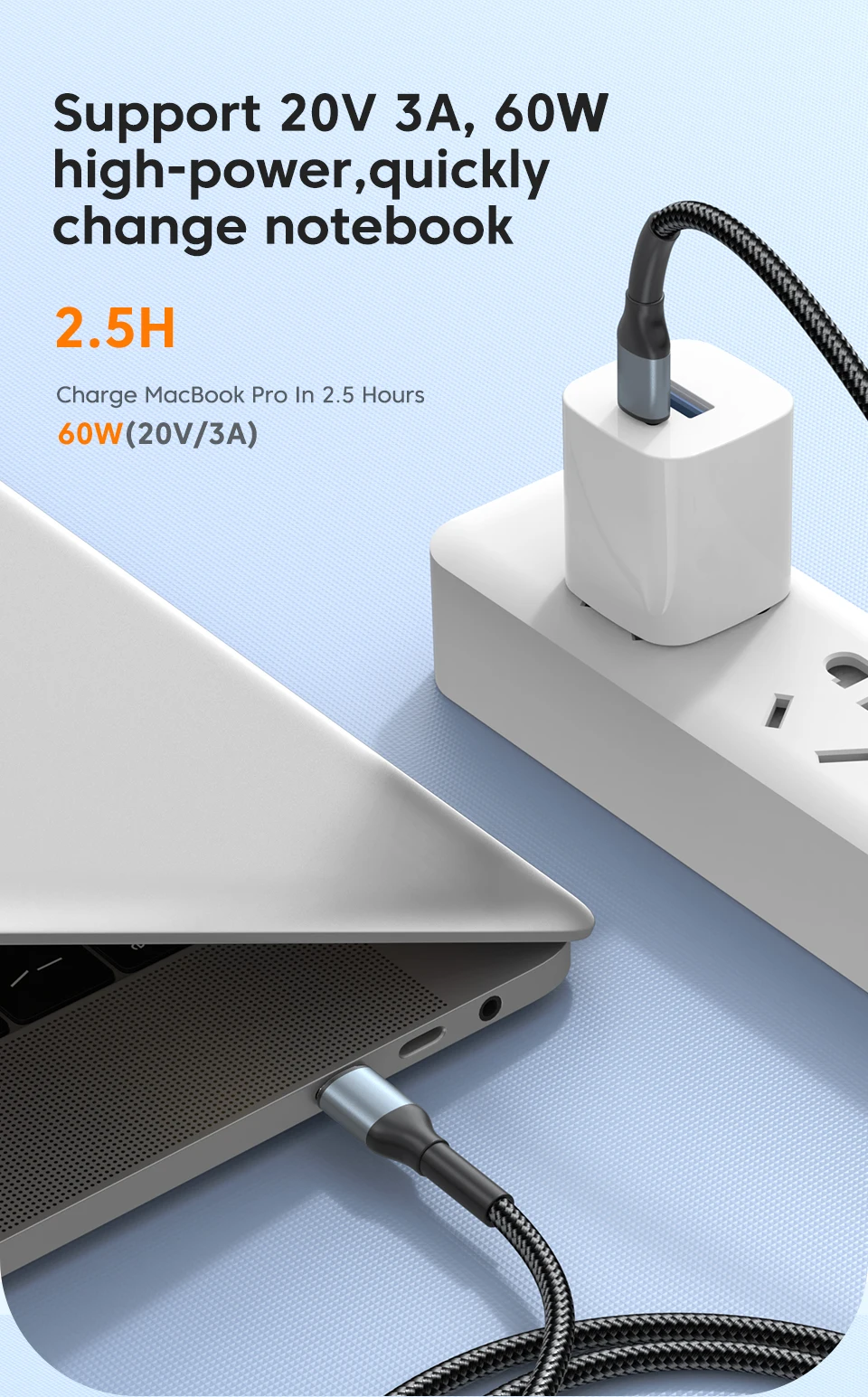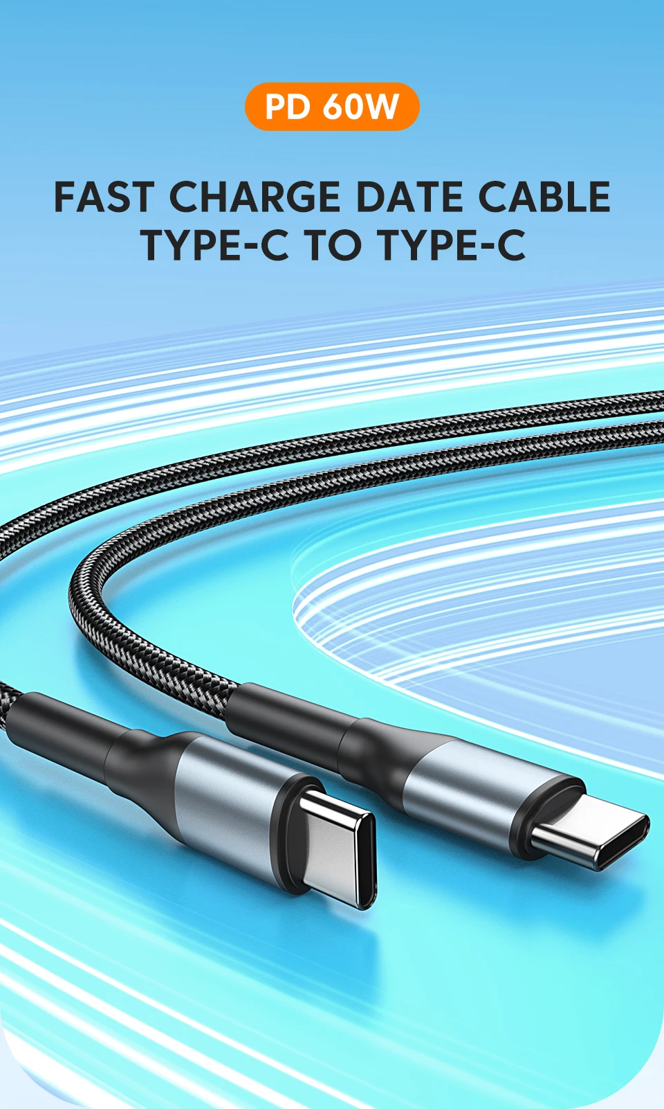 Cable USB C a tipo C Cable de carga rápida de 60W para teléfono móvil Cable de carga para Xiaomi Samsung Huawei Macbook iPad