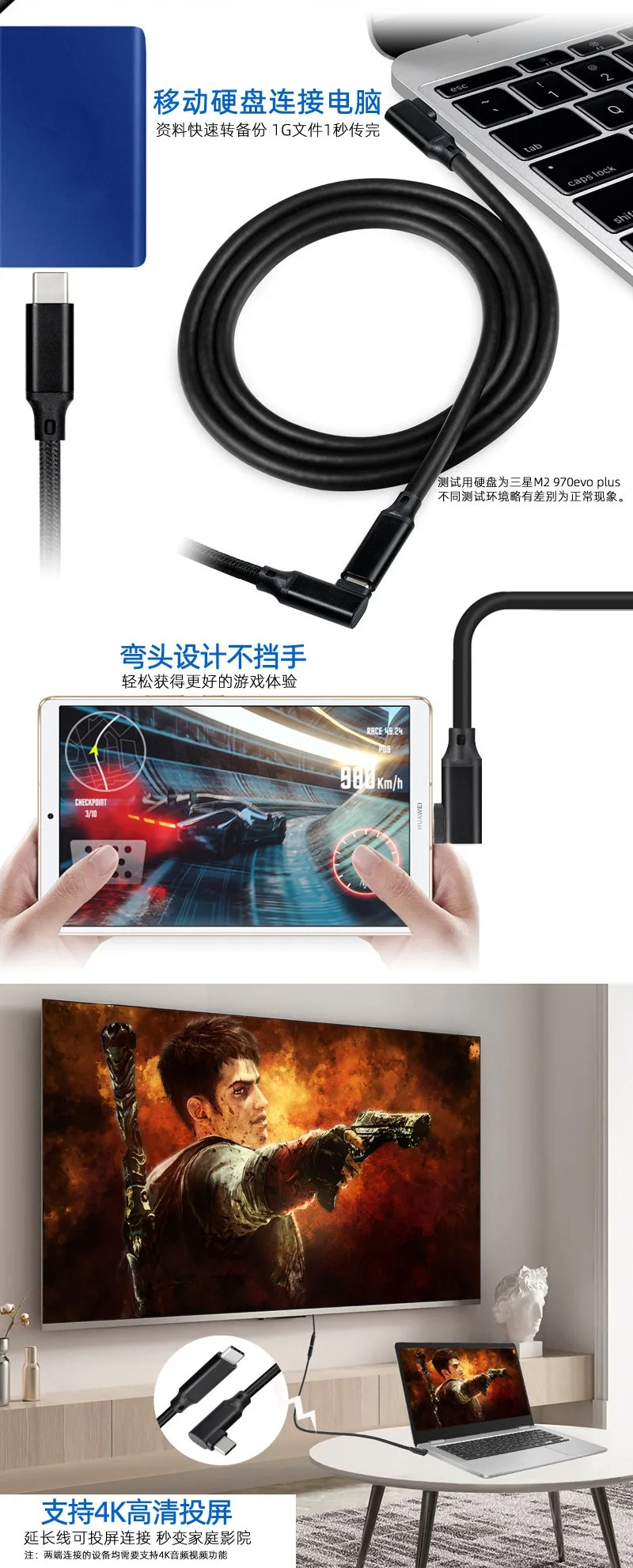 Comprar Cable USB tipo C a USB-C, Cable de carga rápida 3,2 Gen 2, 4K, UHD, 20Gbps, 3,1 W, PD, para Oculus Quest, MacBook Pro