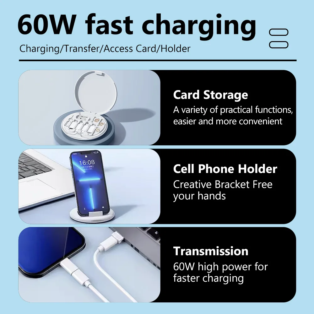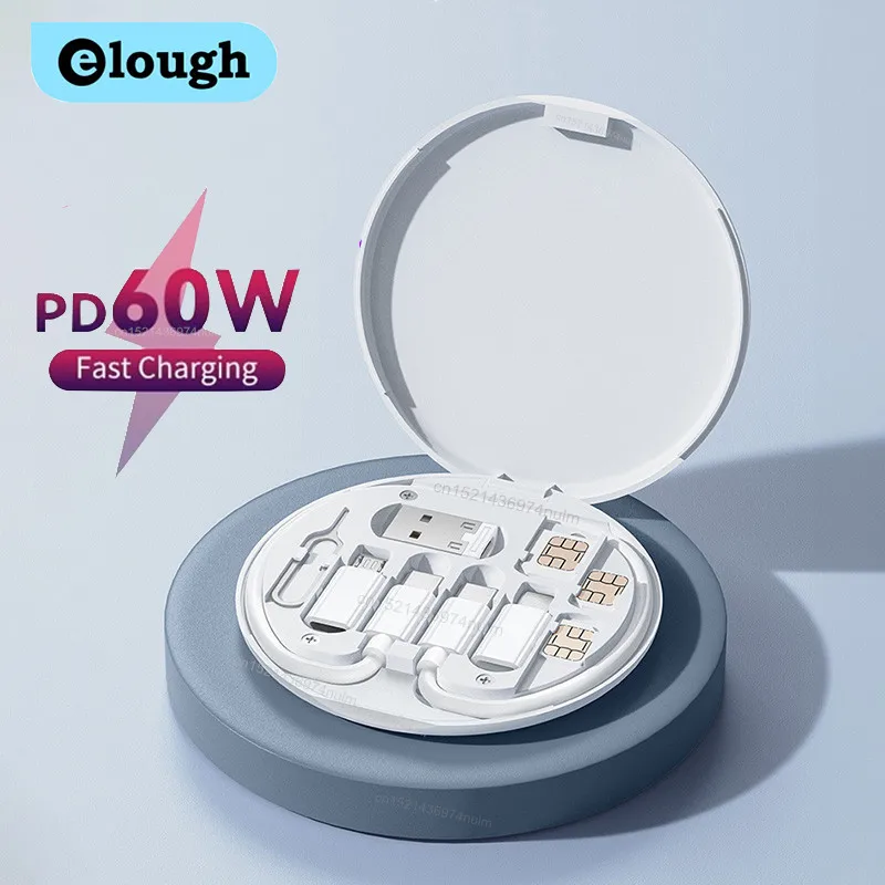 Comprar Cable USB tipo C a USB C, carga rápida, 4 en 1, PD, 60W, para iPhone, Xiaomi, Cable Micro tipo C con caja de almacenamiento, organizador de cables