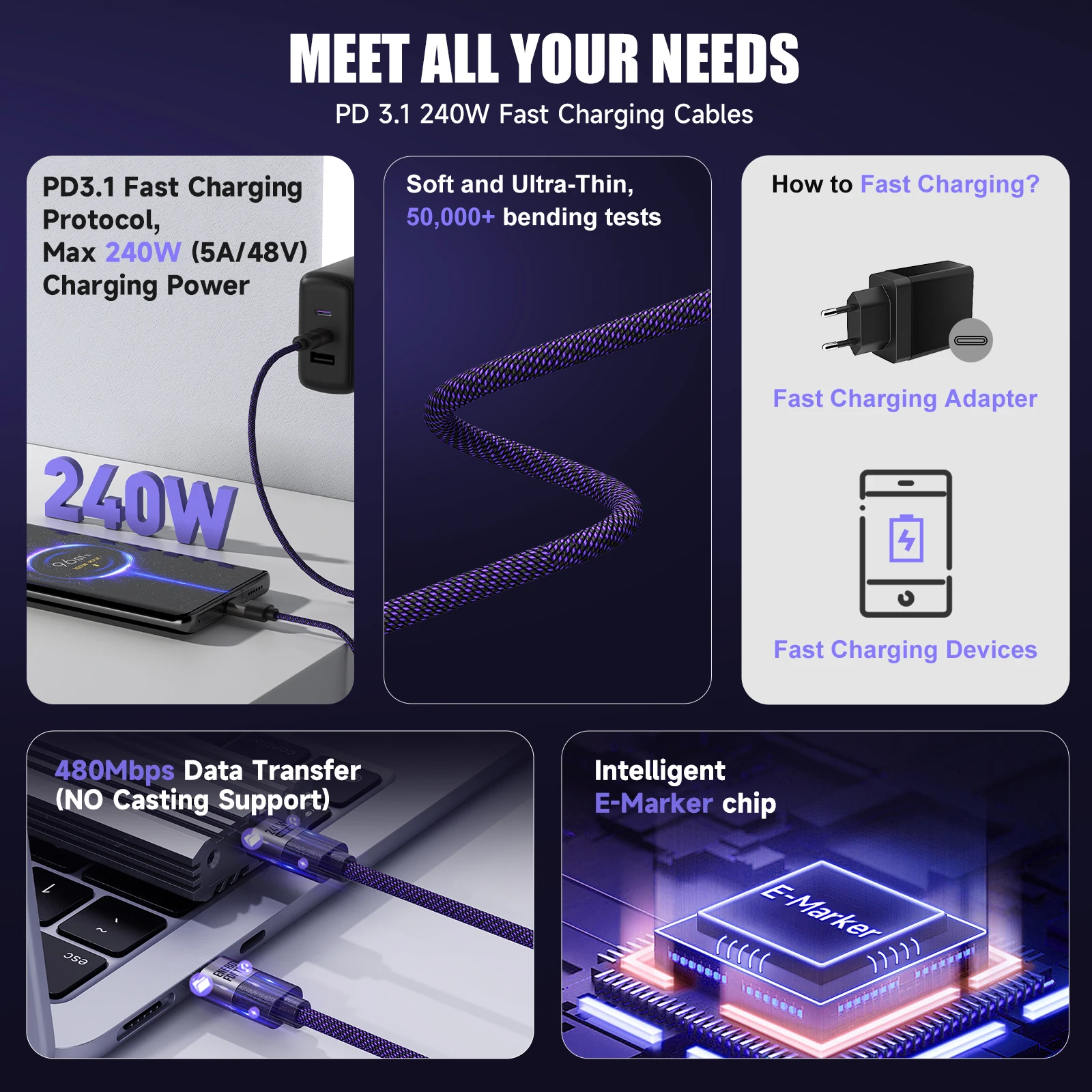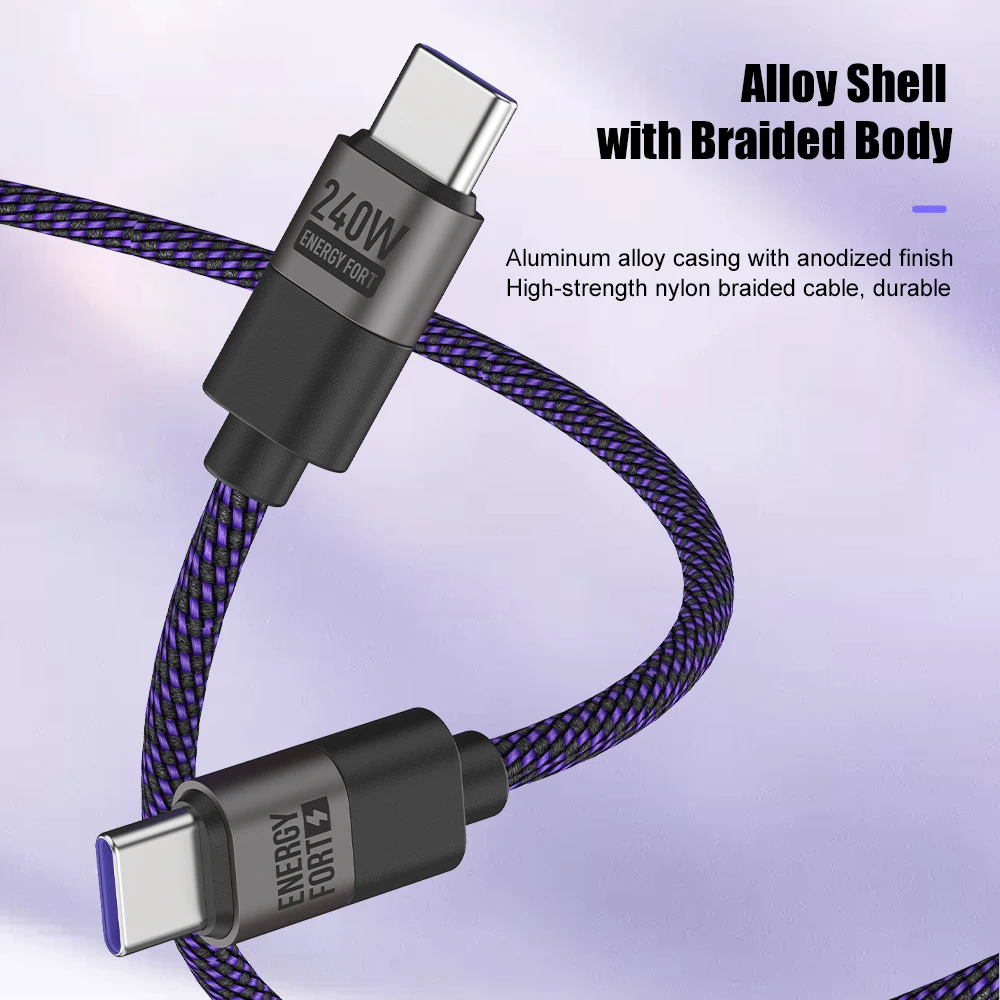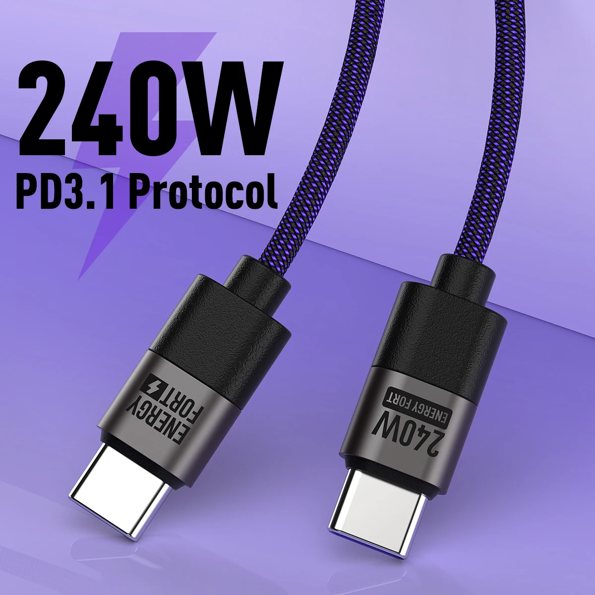 Comprar Cable USB tipo C a USB C, cargador de carga rápida PD240W, Cable trenzado USB C para iPhone 16promax/15, Samsung y Xiaomi