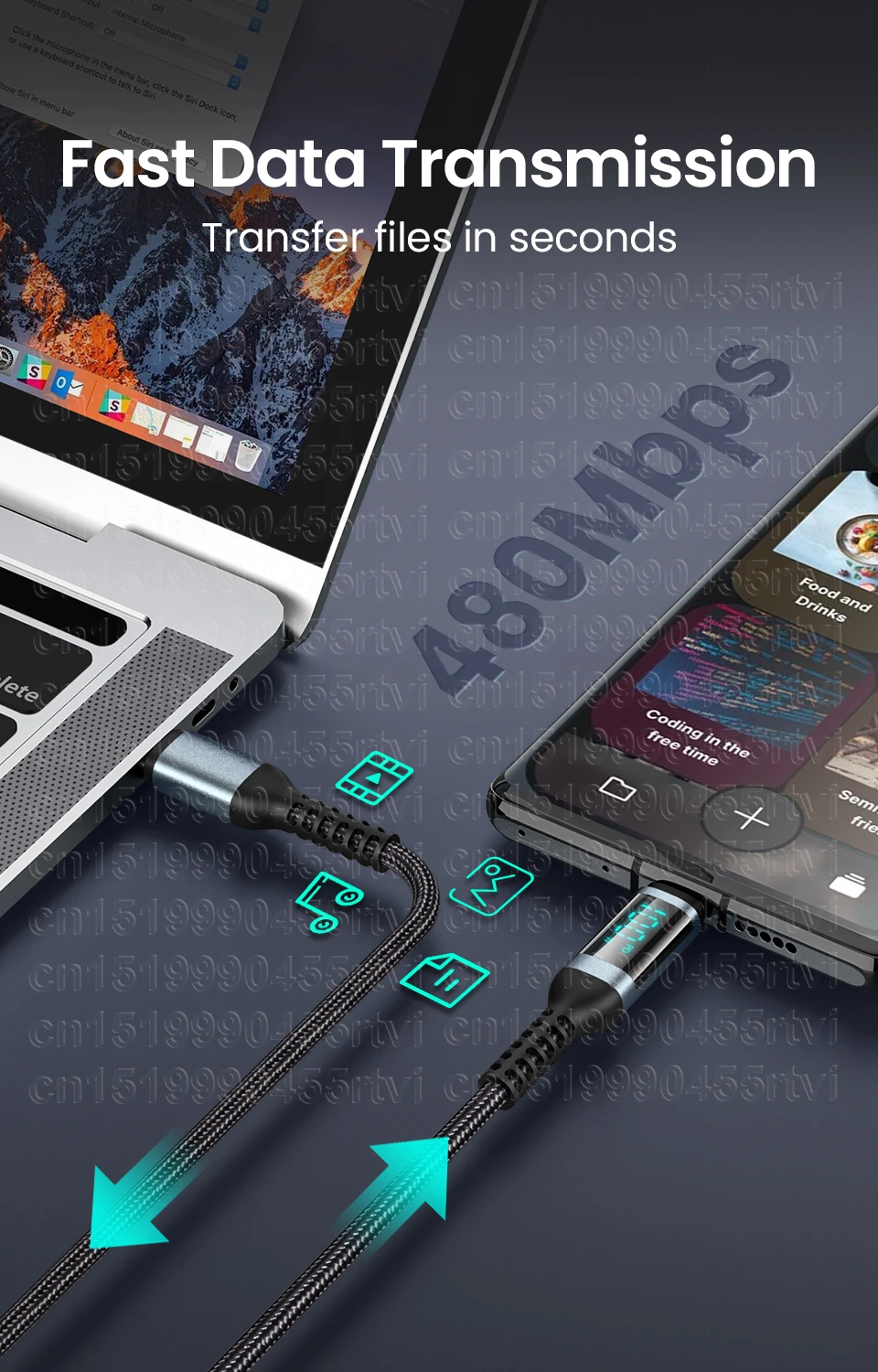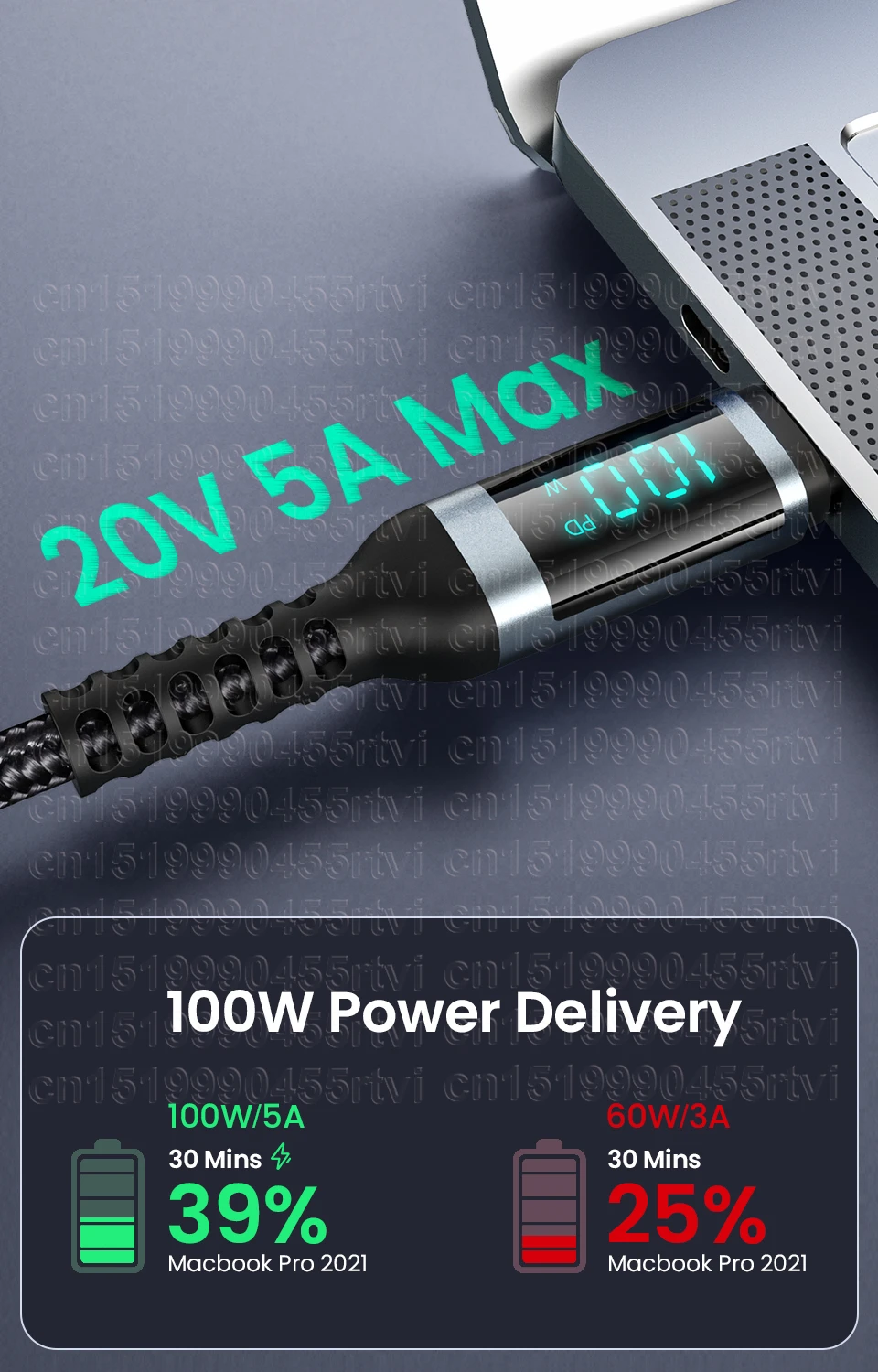 Pantalla LED 100W USB tipo C a USB C Cable para Macbook iPad Samsung Xiaomi PD cargador de carga rápida 5A E-Marker Fast USB C Cord