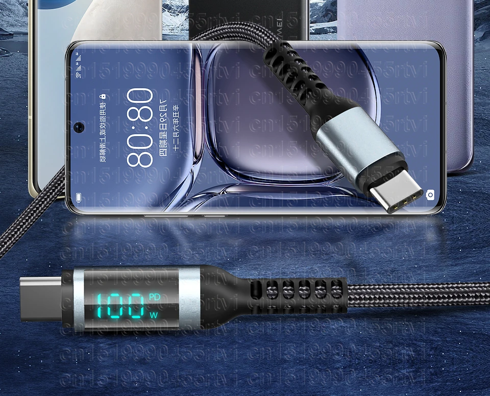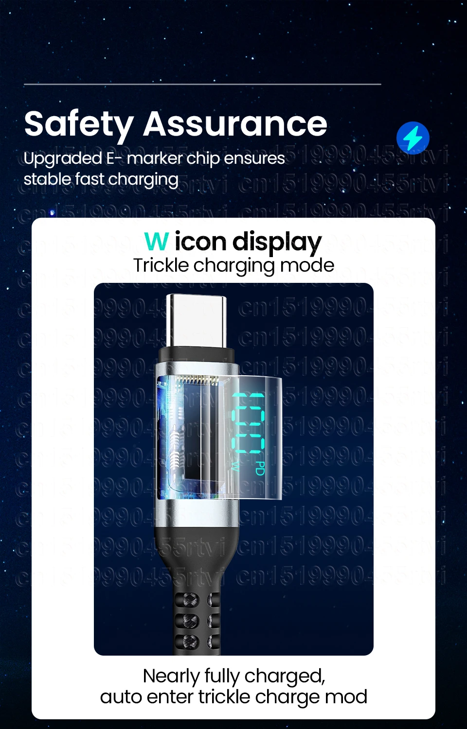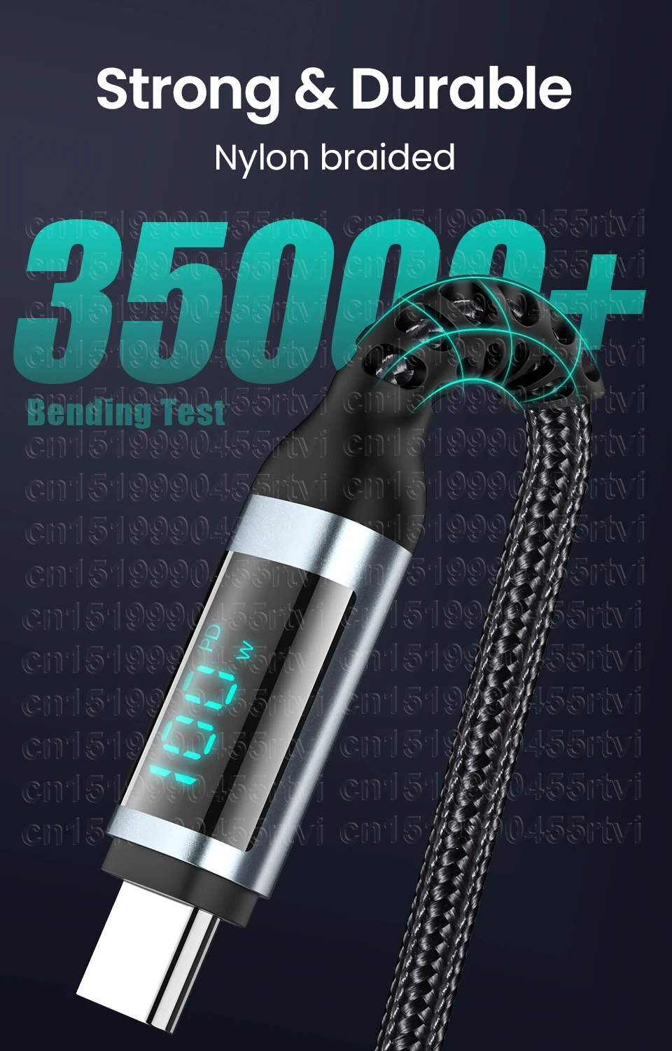 Comprar Cable USB tipo C a USB C para Macbook, iPad, Samsung, Xiaomi PD, cargador de carga rápida 5A, marcador electrónico, pantalla LED, 100W