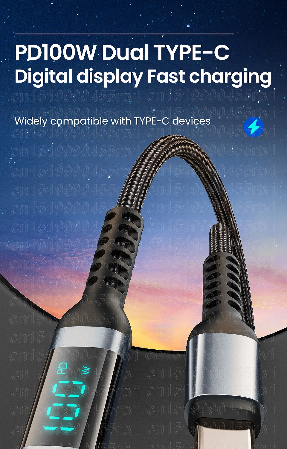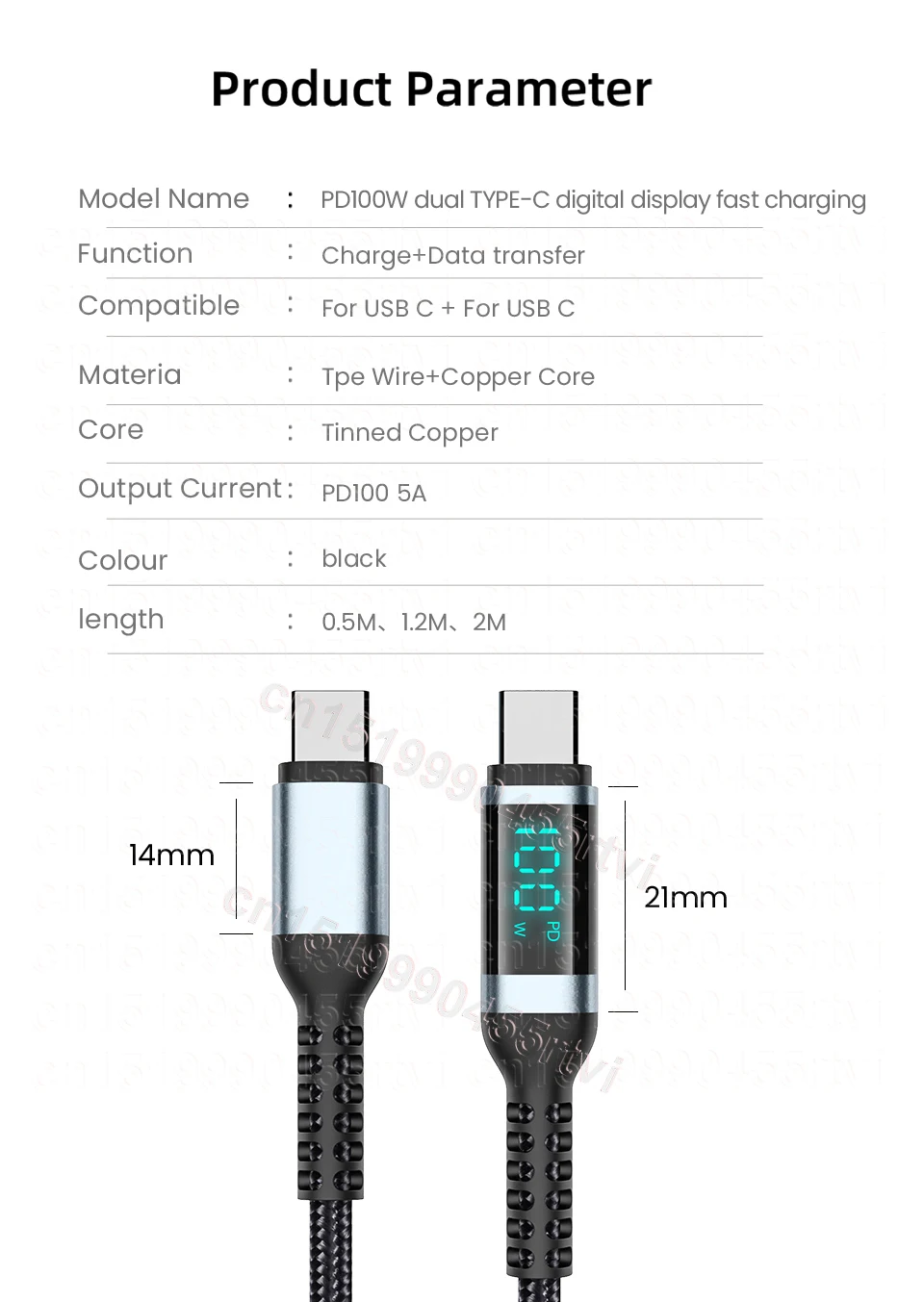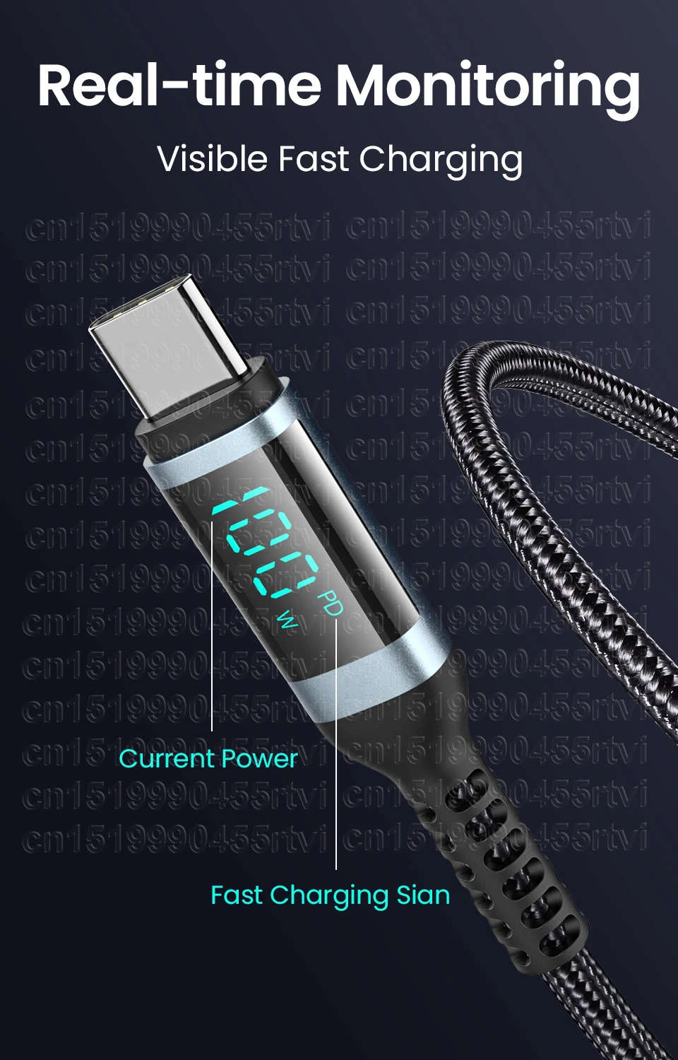 Comprar Cable USB tipo C a USB C para Macbook, iPad, Samsung, Xiaomi PD, cargador de carga rápida 5A, marcador electrónico, pantalla LED, 100W