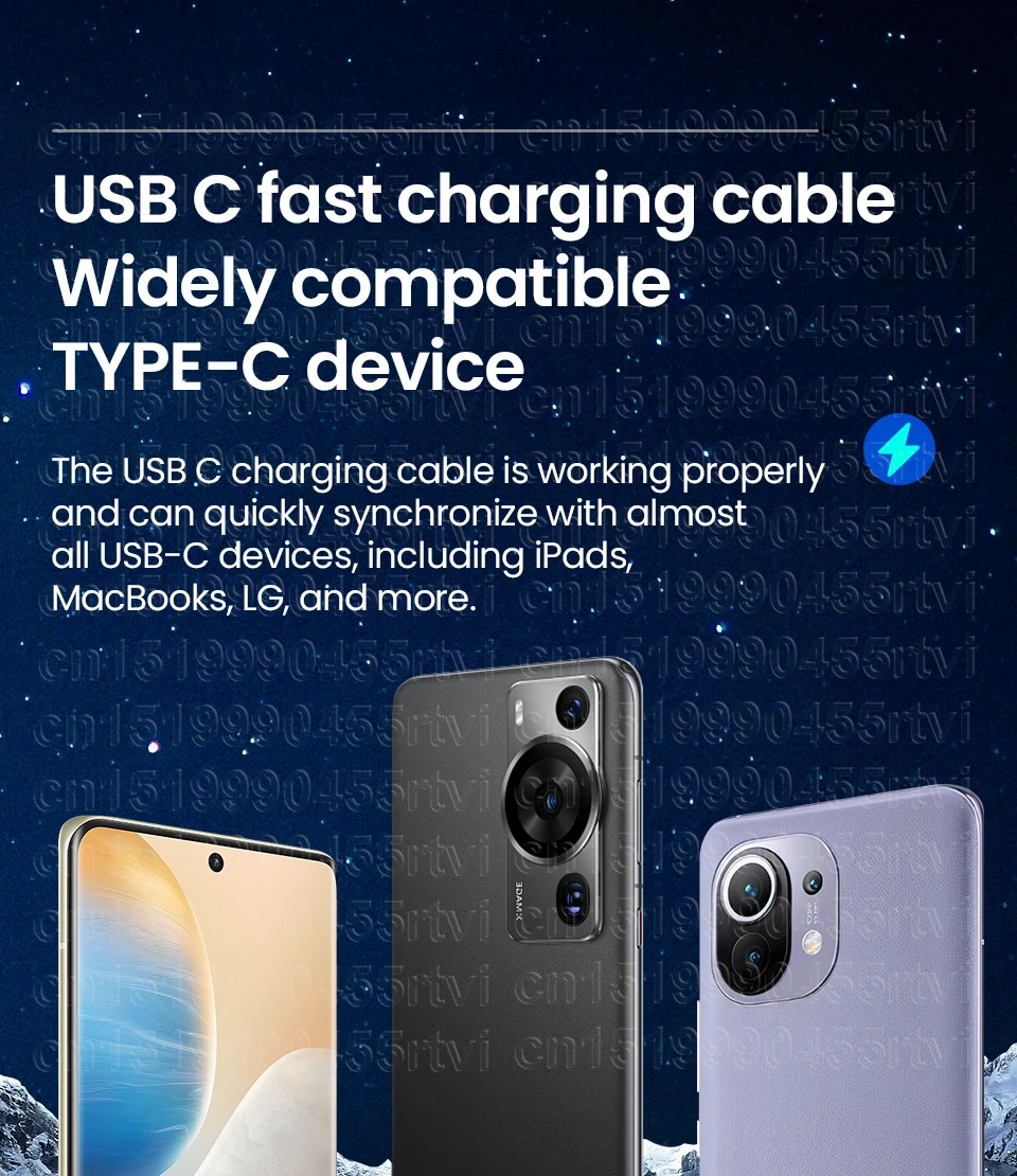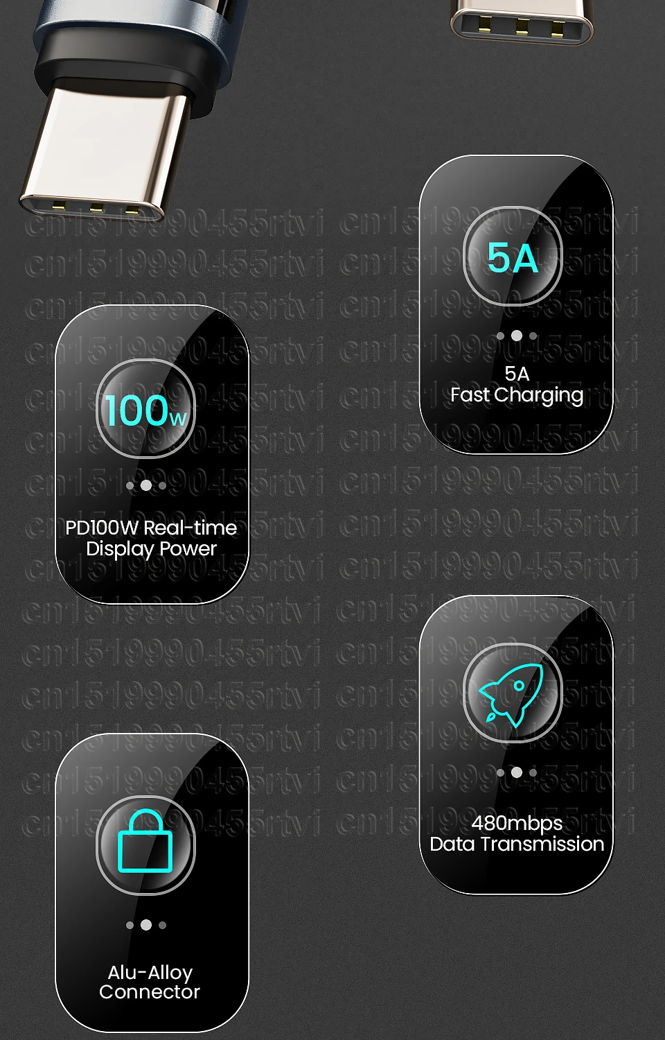 Cable USB C a USB C integrado en chip inteligente E-marker, que garantiza una carga segura de hasta 100W (20V @ 5A) potencia de salida para sus ordenadores portátiles/teléfonos móviles/tabletas a toda velocidad.