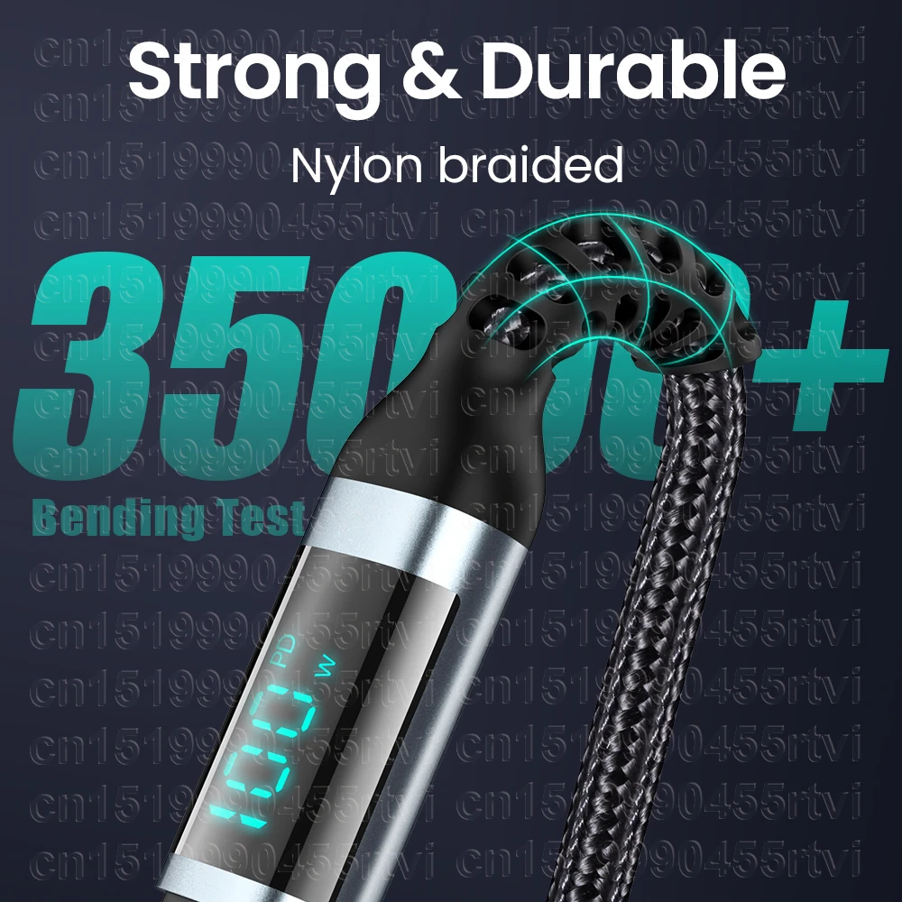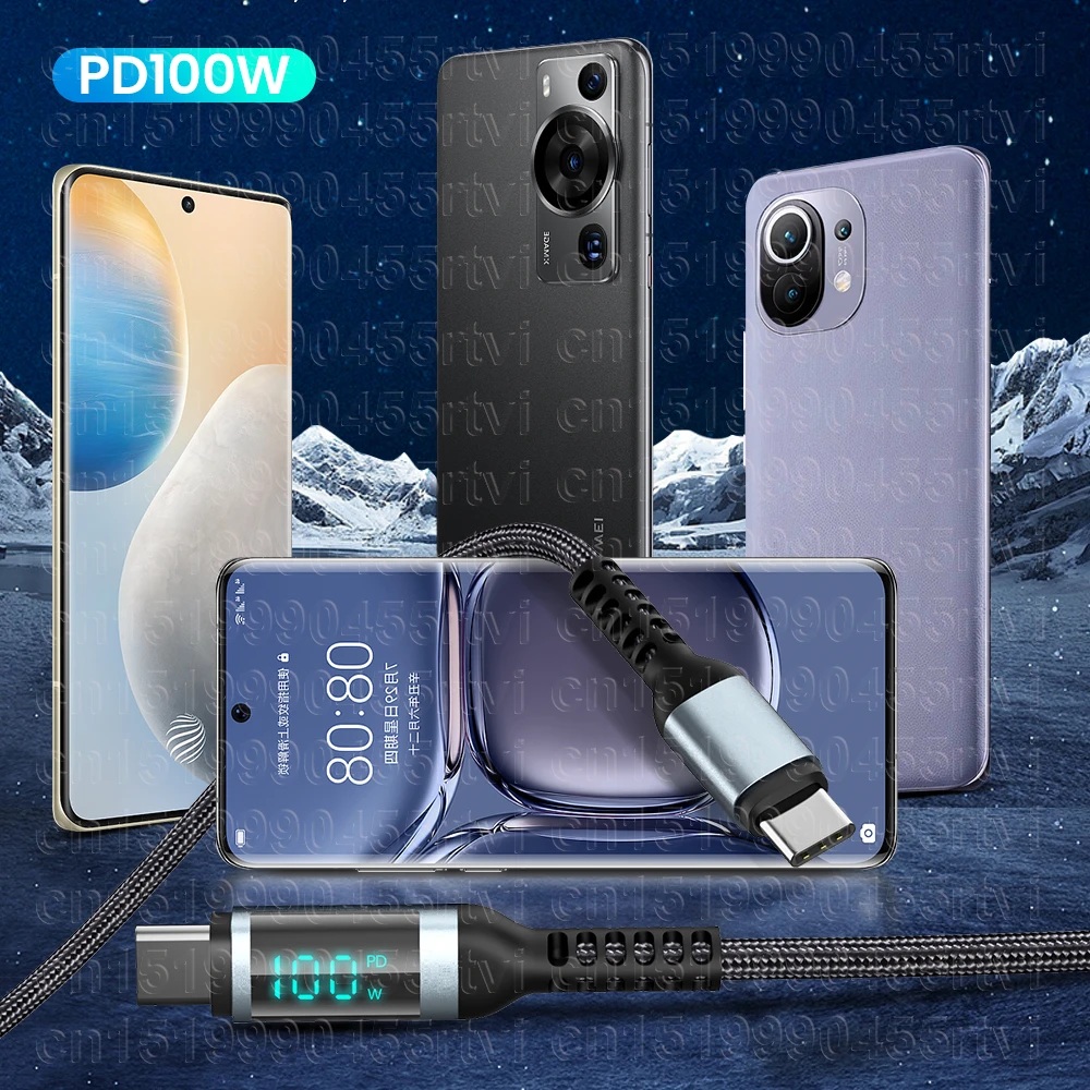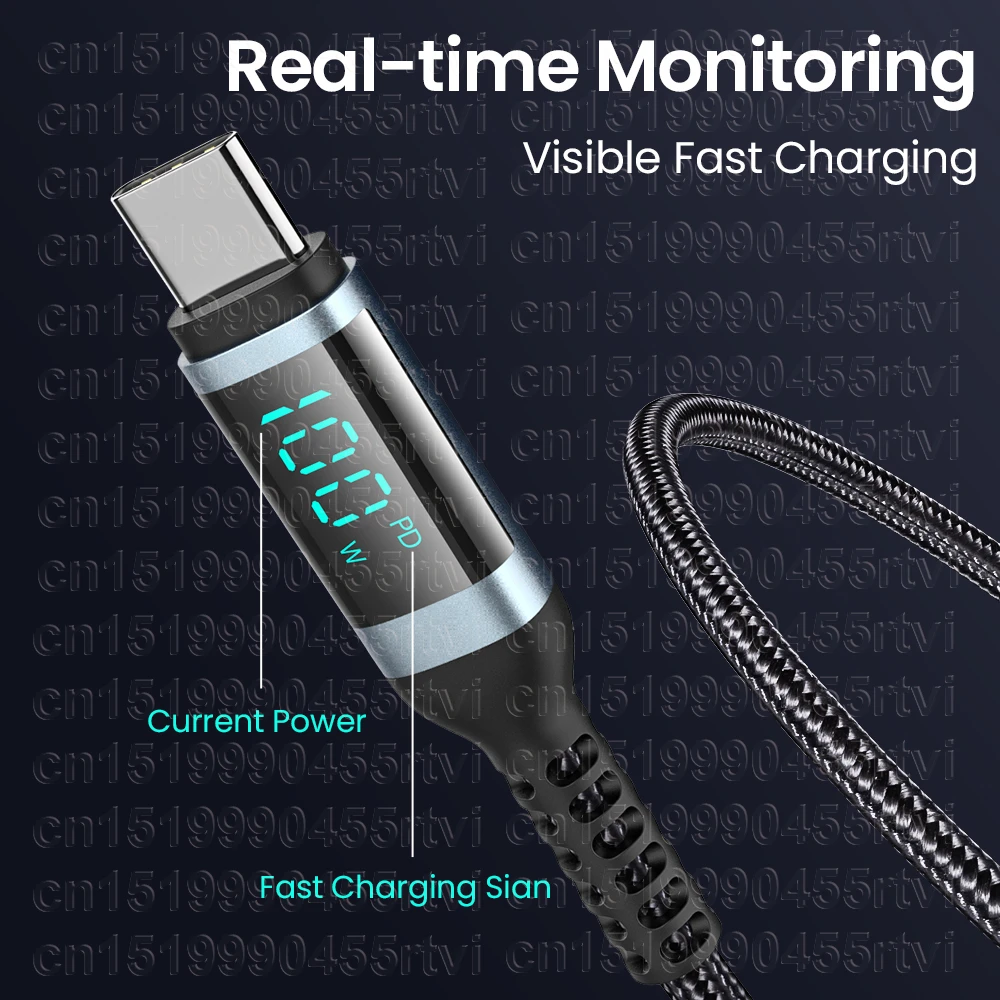 Comprar Cable USB tipo C a USB C para Macbook, iPad, Samsung, Xiaomi PD, cargador de carga rápida 5A, marcador electrónico, pantalla LED, 100W