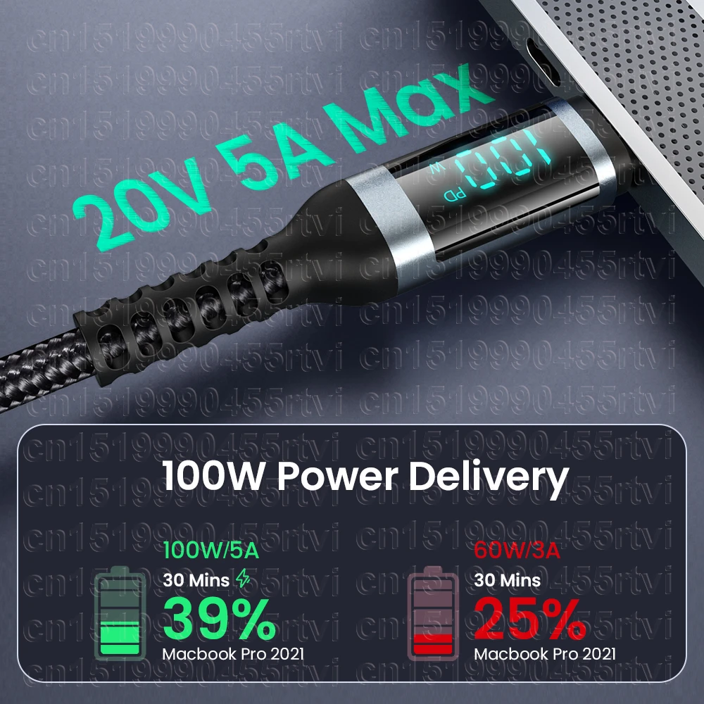 Pantalla LED 100W USB tipo C a USB C Cable para Macbook iPad Samsung Xiaomi PD cargador de carga rápida 5A E-Marker Fast USB C Cord
