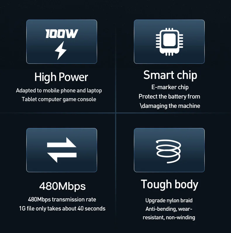 Comprar Cable USB tipo C a USB tipo C 100W 60W PD Cable de cargador rápido Cable Usb C para Xiaomi Samsung Huawei Macbook iPad