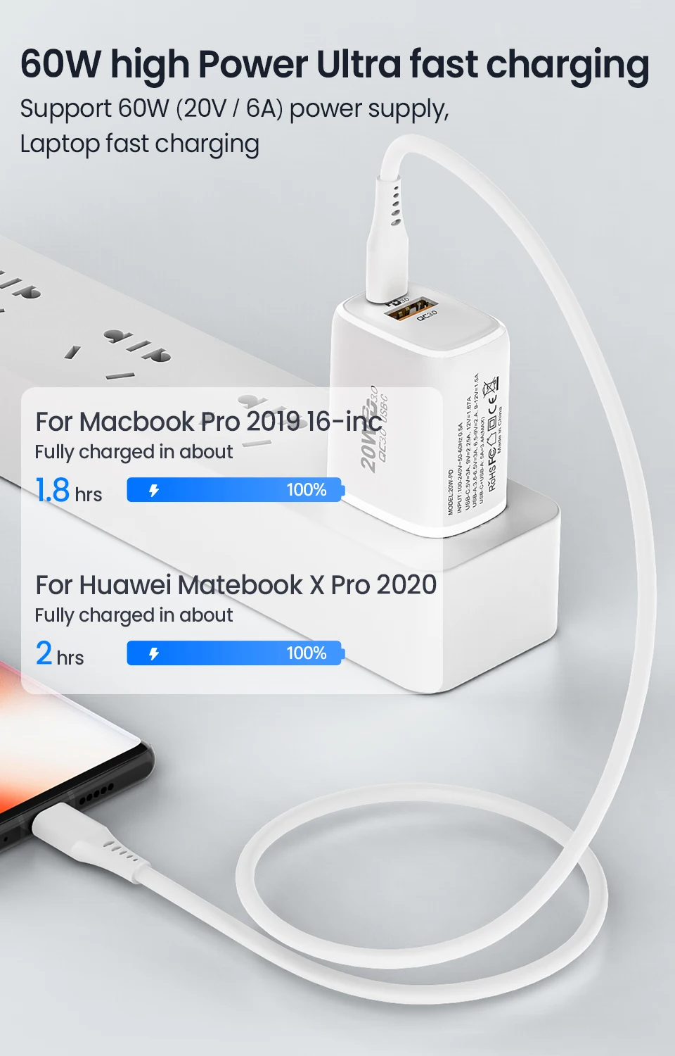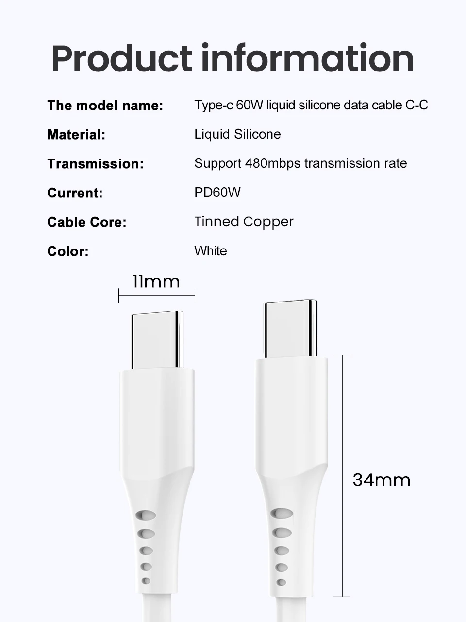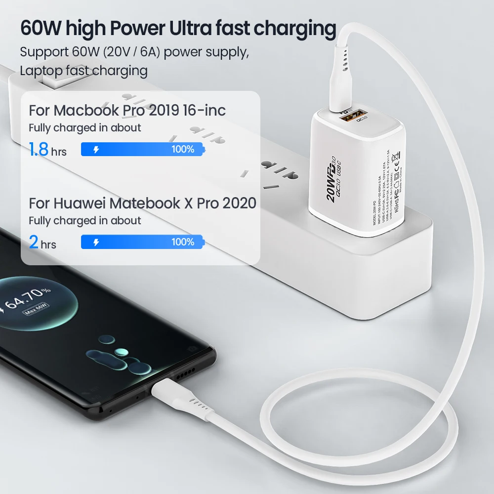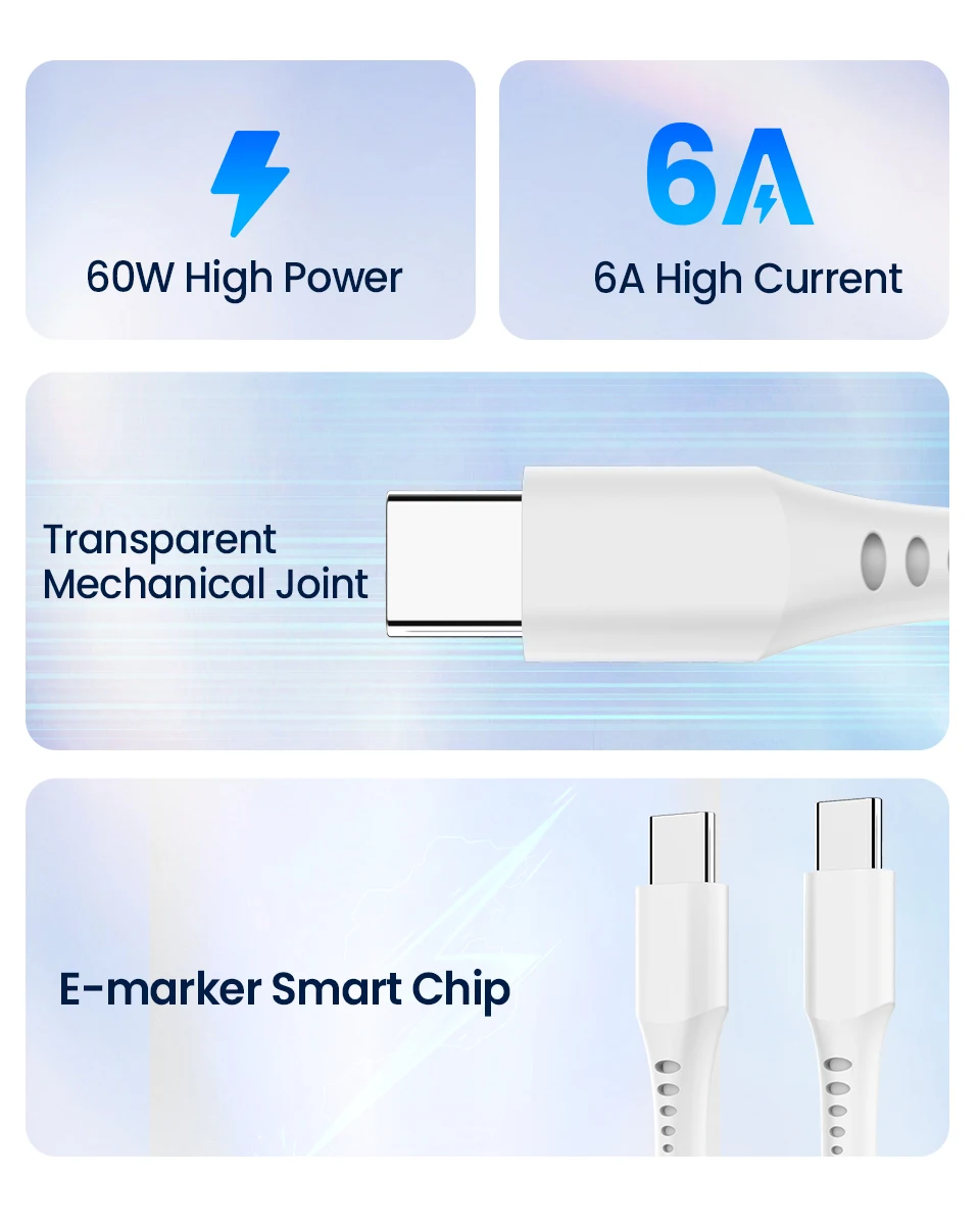 Comprar Cable USB tipo C a USB tipo C de 60W, cargador de carga rápida USBC PD, USB-C, 6A, tipo C, para Macbook, Samsung, Xiaomi, Huawei